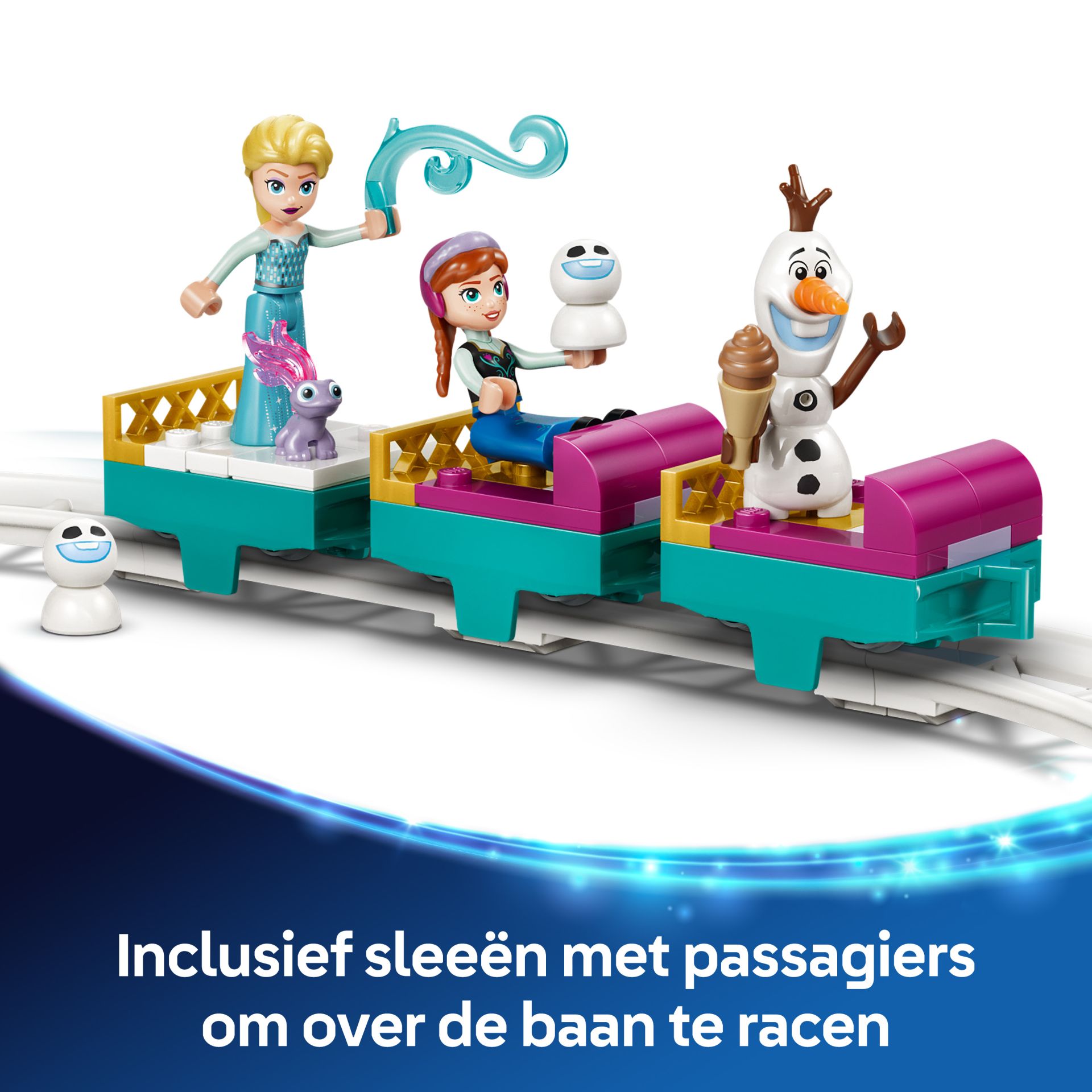 PERSONAGES EN FUNCTIES – bevat LEGO® ǀ Disney figuren van Elsa, Anna, Olaf, Bruni en 3 Snowgies, een kist die open kan en sleekarretjes op rails met ruimte voor de figuren