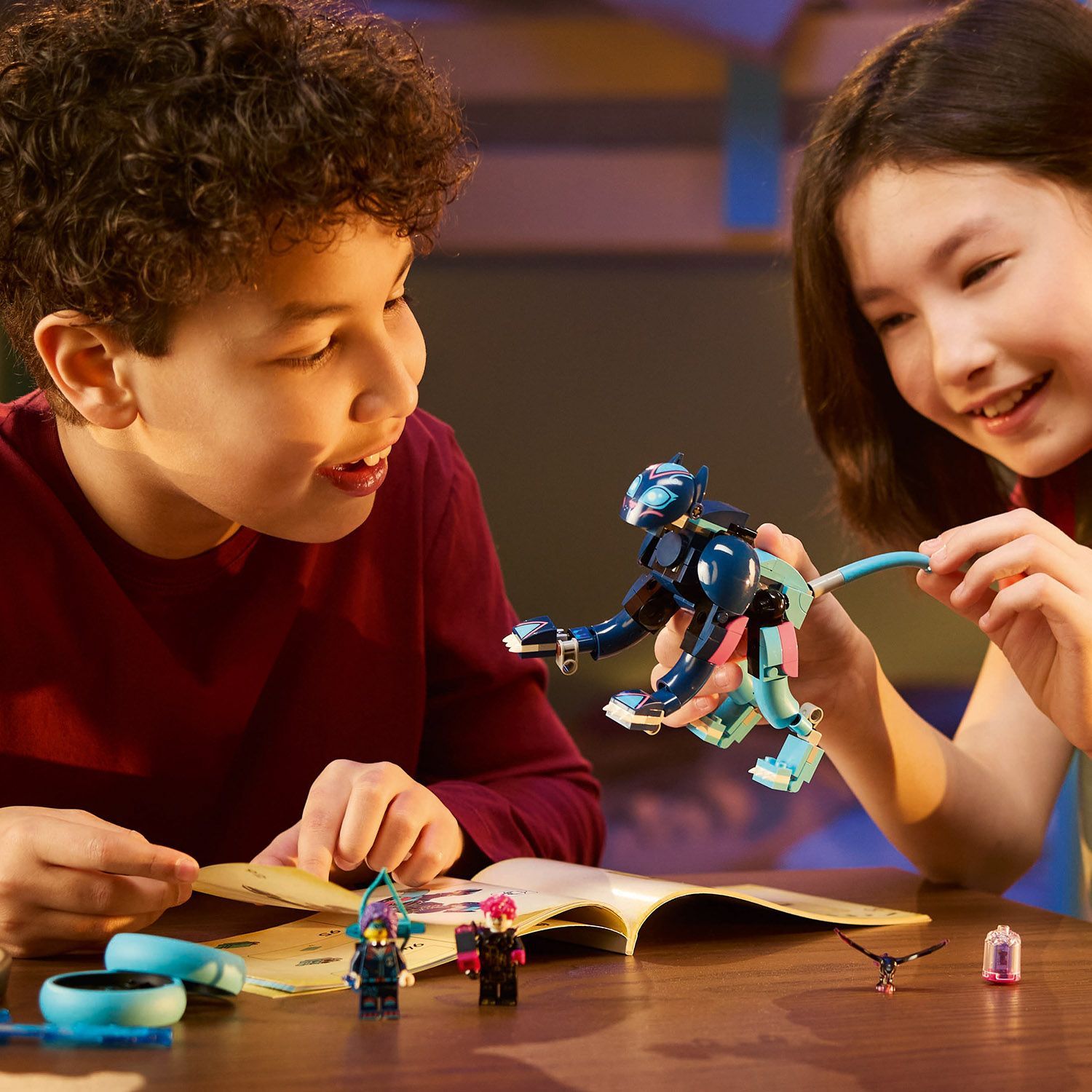 Deze LEGO DREAMZzz set stimuleert de creativiteit en wordt tot leven gebracht door 2 minifiguren, waaronder Zoey, die aan de achterkant van het kattenmodel kan worden bevestigd en wordt geleverd met een boogaccessoire dat echt kan schieten. De set bevat bouwinstructies op basis van verhalen, zodat kinderen helden kunnen worden in de Droomwereld waar ze 2 avonturen beleven.