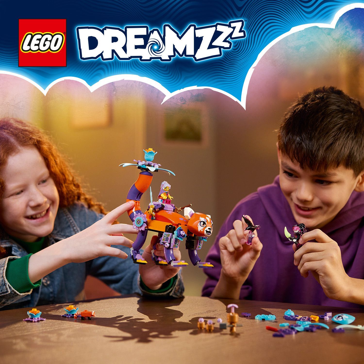 Deze LEGO DREAMZzz set wordt tot leven gebracht door 2 minifiguren: heldin Izzie en haar dubbelganger Dizzie, plus een Droomvolk figuur en een kleine figuur van een rode panda. De set bevat bouwinstructies op basis van verhalen waarmee kinderen helemaal kunnen opgaan in de actie terwijl ze genieten van fantasierijk spel.