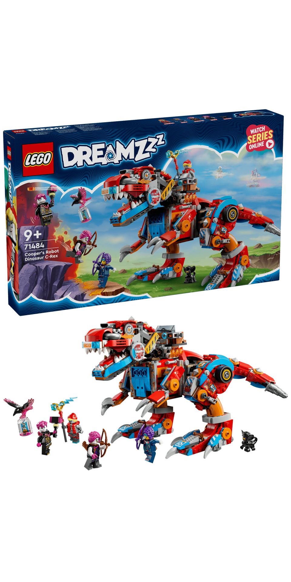 Fantasieverhalen komen tot leven met deze LEGO® DREAMZzz™ Coopers robotdinosaurus C. Rex, een herbouwbare T. rex speelgoeddinosaurus (71484) voor kinderen vanaf 9 jaar. De set is geïnspireerd op de tv-serie en biedt jongens en meisjes 2 manieren om een geweldig dinosaurusmodel te bouwen.