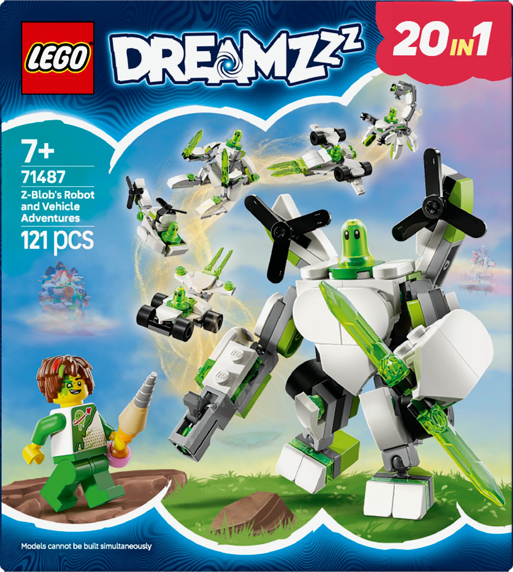 Het hoofdmodel is een Z-Blob speelgoed robot, die jonge dromers vervolgens kunnen ombouwen tot maar liefst 19 andere bouwmogelijkheden. Er zijn allerlei robot- en voertuigmodellen om uit te kiezen, waaronder een speelgoed helikopter, LEGO raceauto, turbojet en schorpioen. Coole details zijn onder andere beweegbare benen, armen, voeten en vleugels, draaibare propellers en een noppenschieter. De set bevat ook een LEGO DREAMZzz minifiguur van Mateo voor fantasierijk speelplezier boordevol actie.