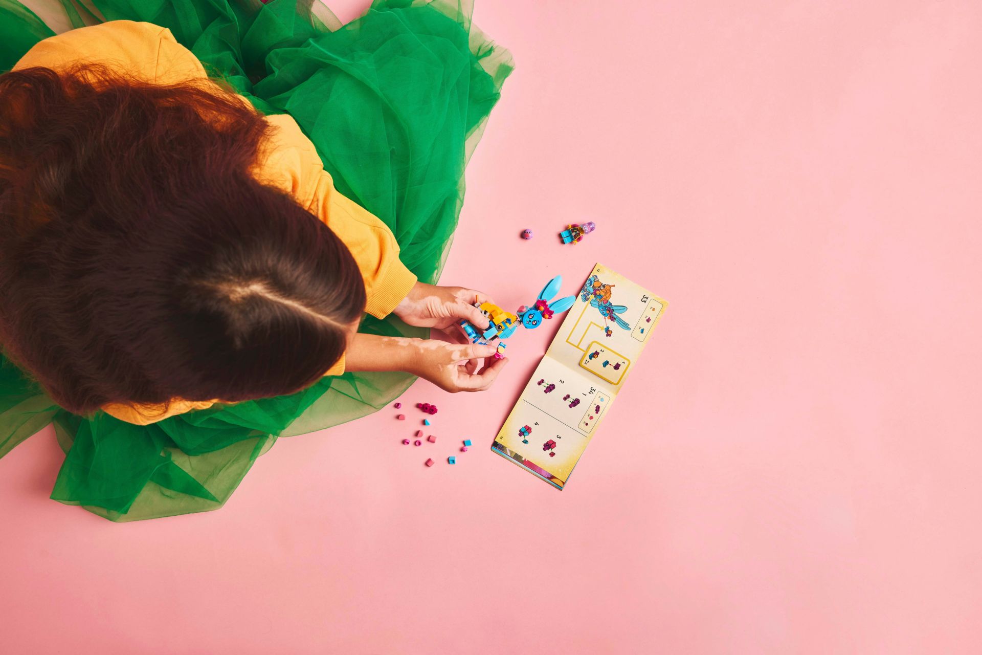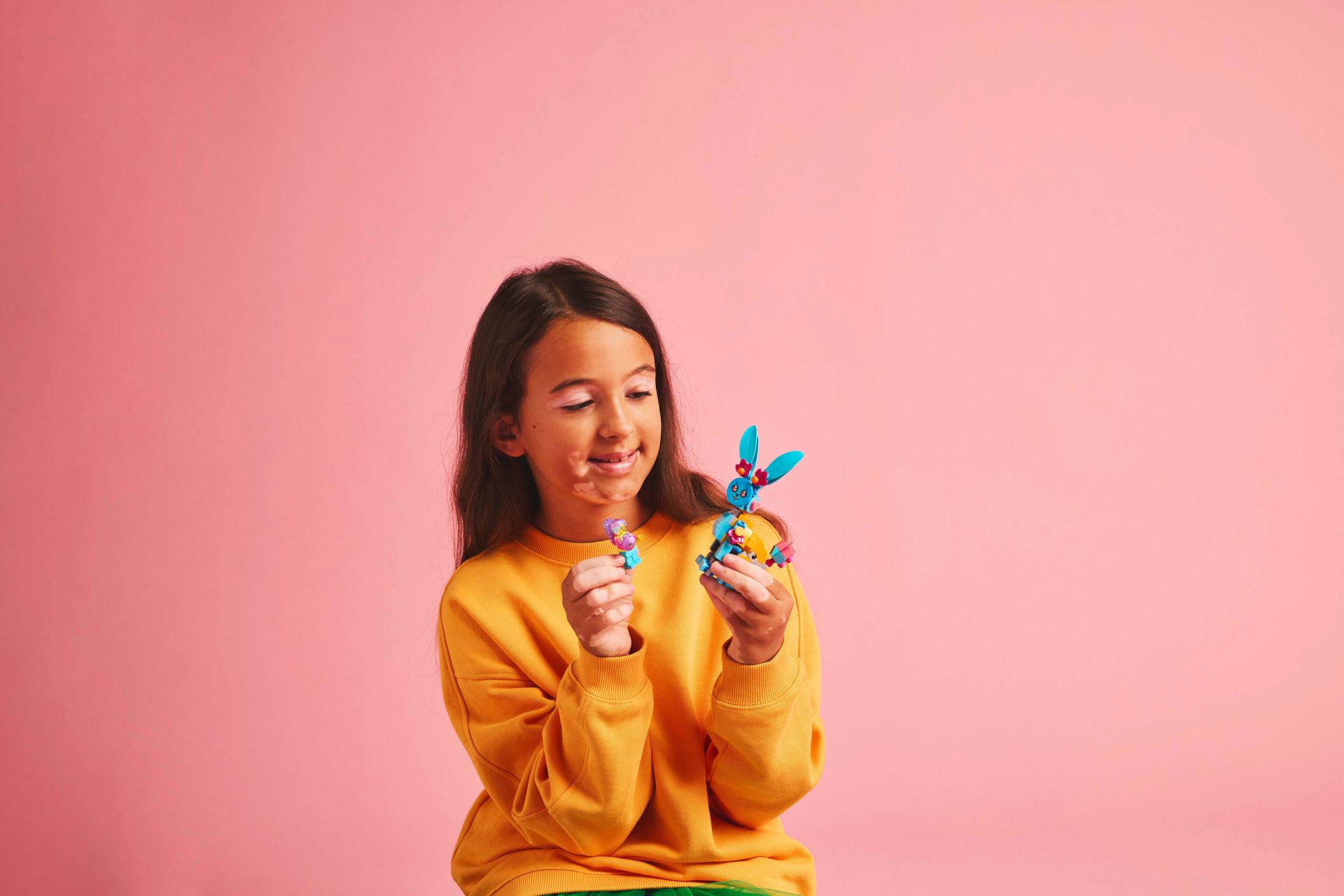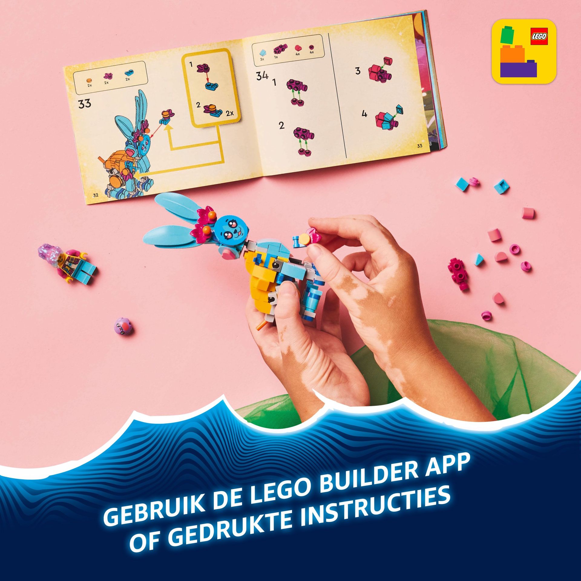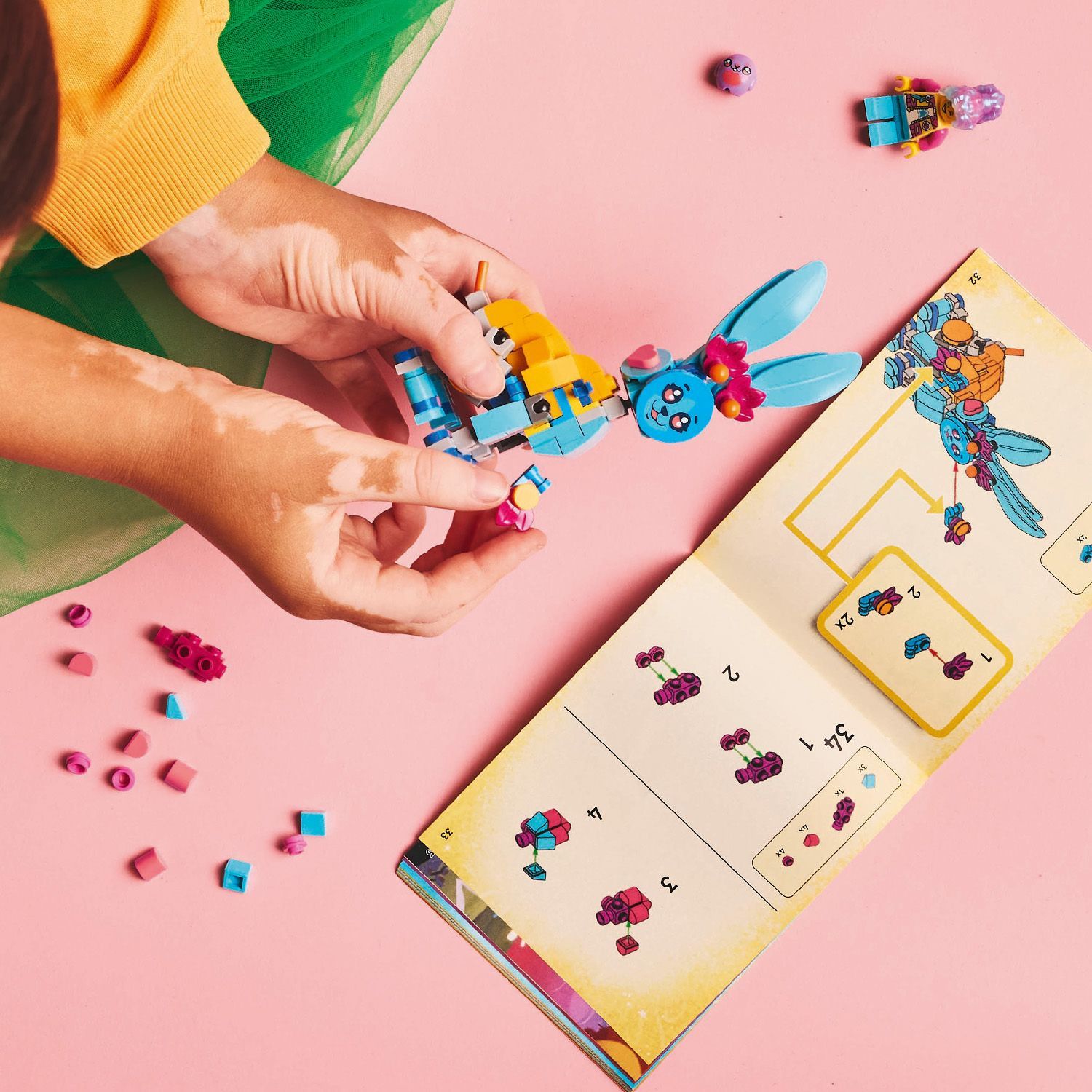 De creativiteit krijgt een boost als kinderen een schattige LEGO dieren figuur van Bunchu bouwen met verstelbare benen, armen, voeten, staart en oren, voordat ze hem ombouwen tot een van de 19 andere speelgoed dieren: een leeuw, schildpad, hert, vlinder, libel en meer! De set wordt tot leven gebracht door een minifiguur van Izzie in een nieuwe outfit met een knuffelaccessoire. De set stimuleert creatieve rollenspellen waarin kinderen nieuwe avonturen bedenken voor de LEGO DREAMZzz heldin en haar trouwe konijn.