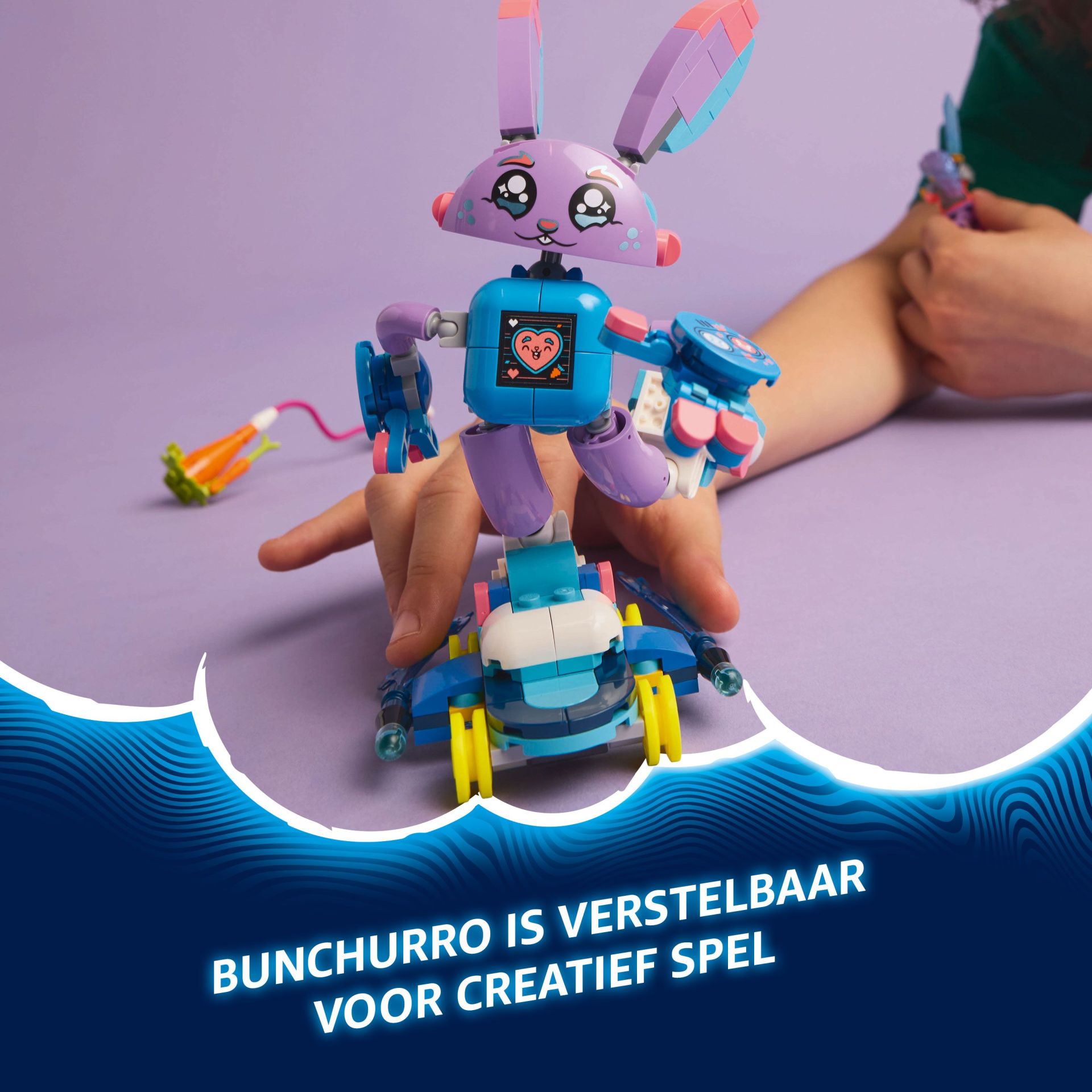 De Bunchurro figuur is een coole nieuwe versie van het konijn Bunchu met een gamescherm op zijn buik, controllerhandschoenen en sneakers. Na het bouwen ontdekken kinderen 2 manieren om hun model aan te passen: ze kunnen het uitrusten met een skateboard en boosters of een jetpack. Het speelgoed konijn is in allerlei standen verstelbaar en de actie wordt tot leven gebracht door een minifiguur van Izzie, die op de rug van Bunchurro kan worden bevestigd voor fantasierijke rollenspellen.