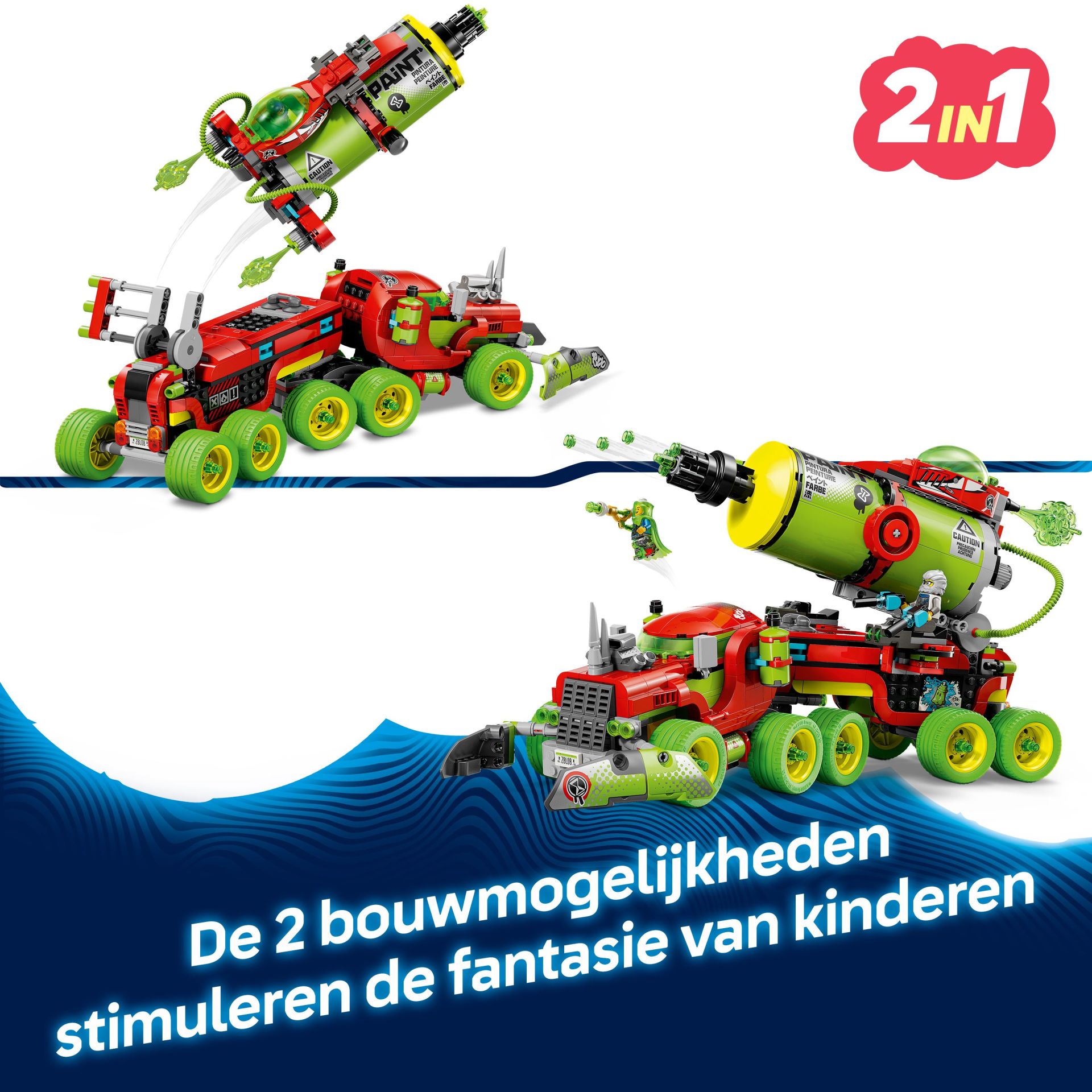 Herbouwbaar voertuigmodel – LEGO® DREAMZzz™ fans zullen veel plezier beleven aan het maken van een speelgoedtruck voordat ze hem kunnen ombouwen tot een gigantische spuitbus of een spuitbusraketwerper