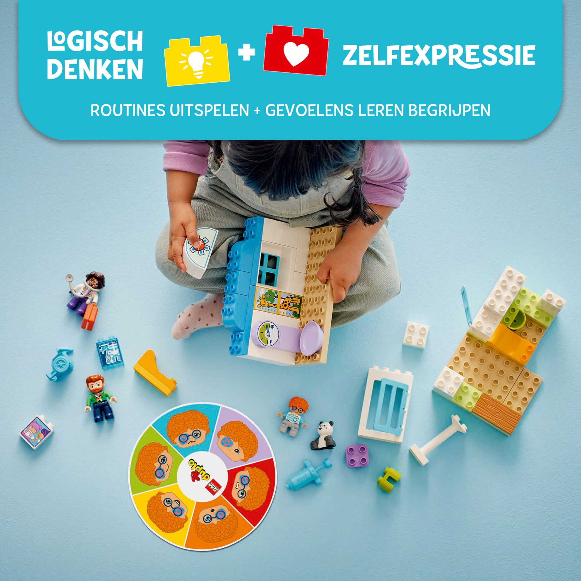 Dit bouwpakket is een geweldig cadeau voor peuters die van fantasierijk speelgoed houden. Met het meegeleverde speelwiel kunnen ouders en kinderen de verschillende emoties van de jongensfiguur verkennen om ze aan te moedigen hun gevoelens over het naar de dokter gaan te uiten. LEGO DUPLO speelgoed zit boordevol boeiende verhalen, alledaagse helden en diverse personages om peuters te helpen de wereld om hen heen te begrijpen.