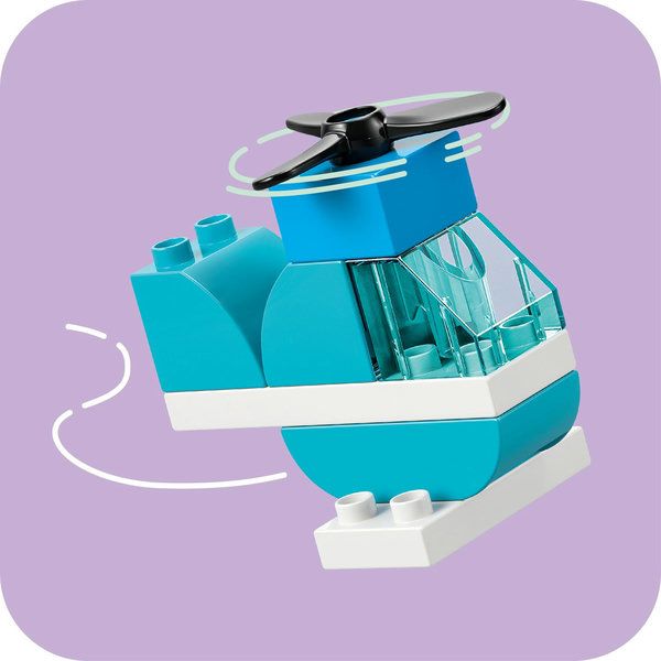HERKENBARE VOERTUIGEN – de hoofdmodellen in deze bouwset voor peuters zijn een kleine speelgoedauto, een LEGO® DUPLO® helikopter met draaibare rotor, een kiepwagen met kantelbare laadbak, een brandweerwagen met een ladder en meer