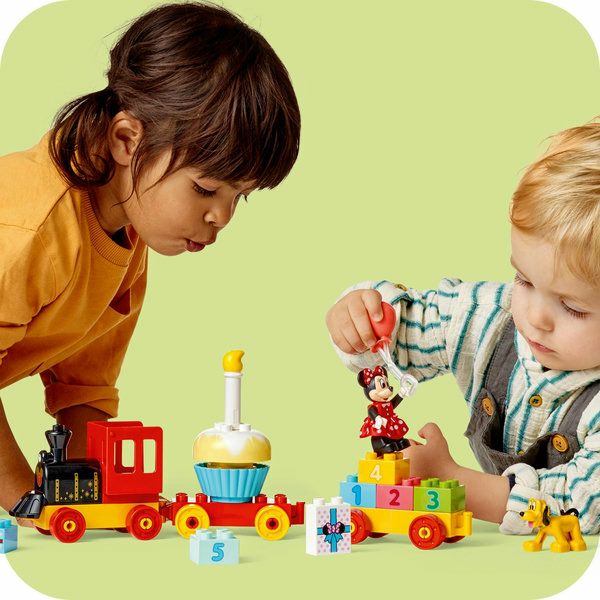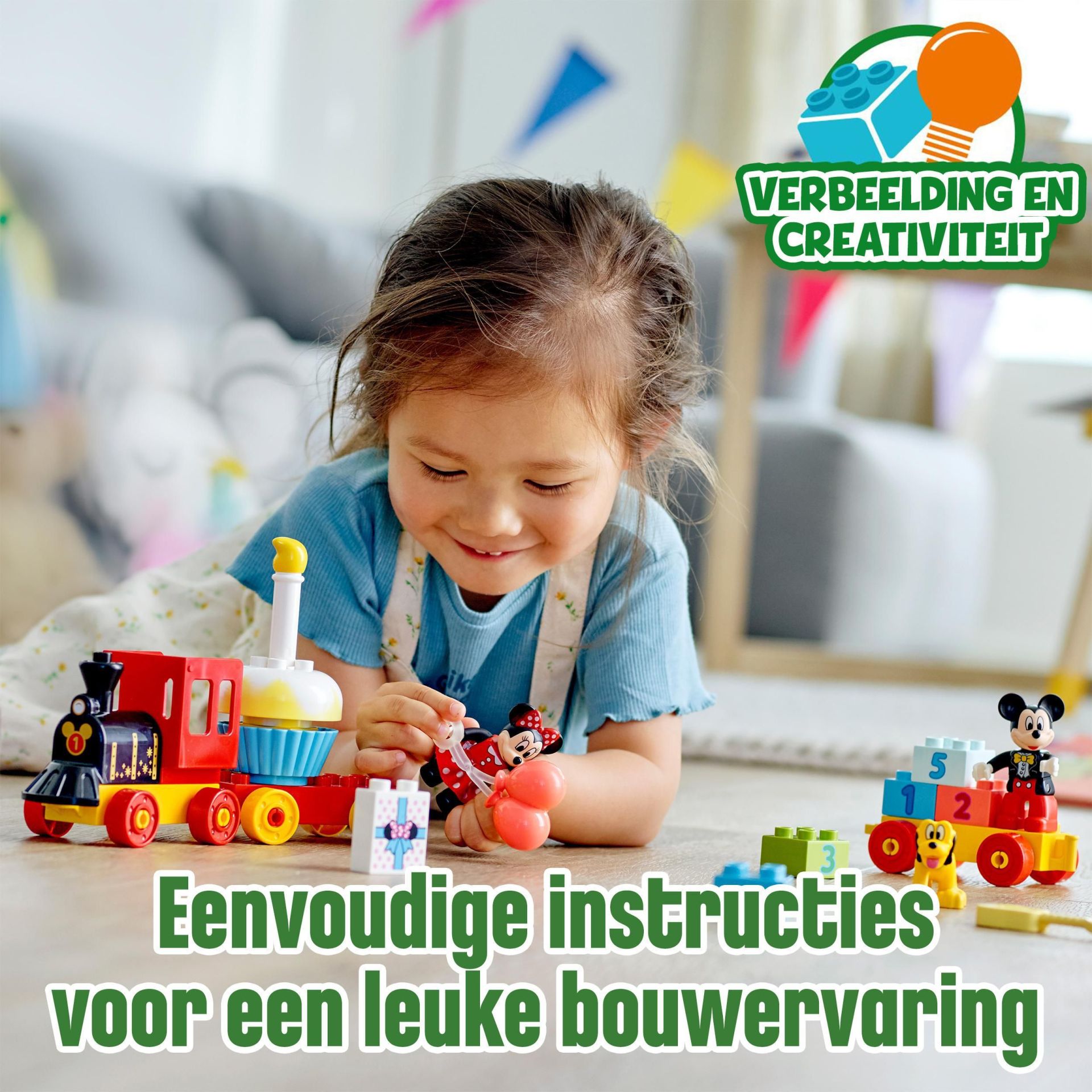 - De LEGO® DUPLO® ǀ Disney Mickey & Minnie Verjaardagstrein (10941) is een hoogwaardige bouwset voor peuters en zit boordevol activiteiten die goed zijn voor hun ontwikkeling, fantasierijke speelmogelijkheden en Disney magie!