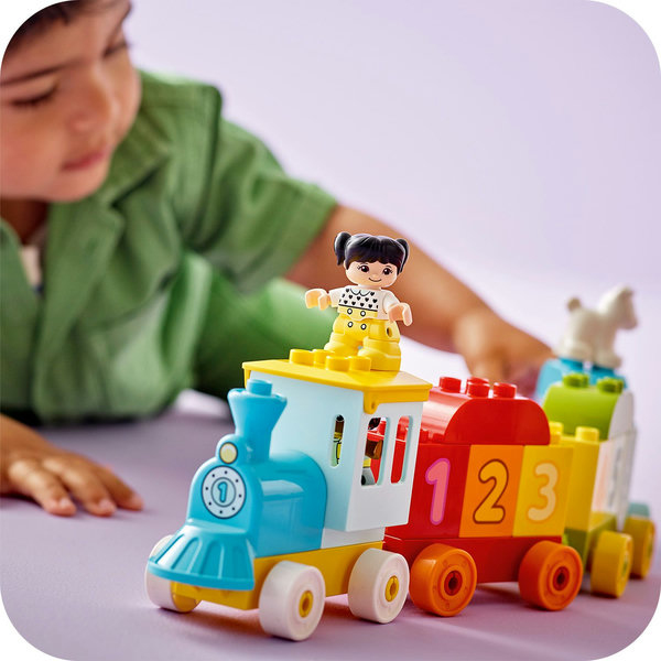 - Laat kinderen kennismaken met getallen met LEGO® DUPLO® Mijn eerste Getallentrein - Leren tellen (10954). Deze nieuwe versie van de bekende Getallentrein biedt meer kleurrijk leerplezier dan ooit tevoren.
