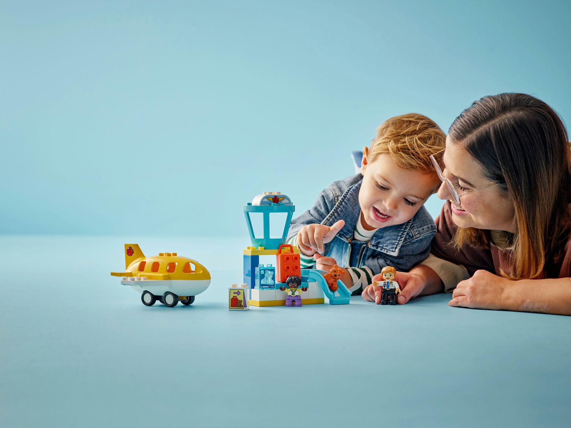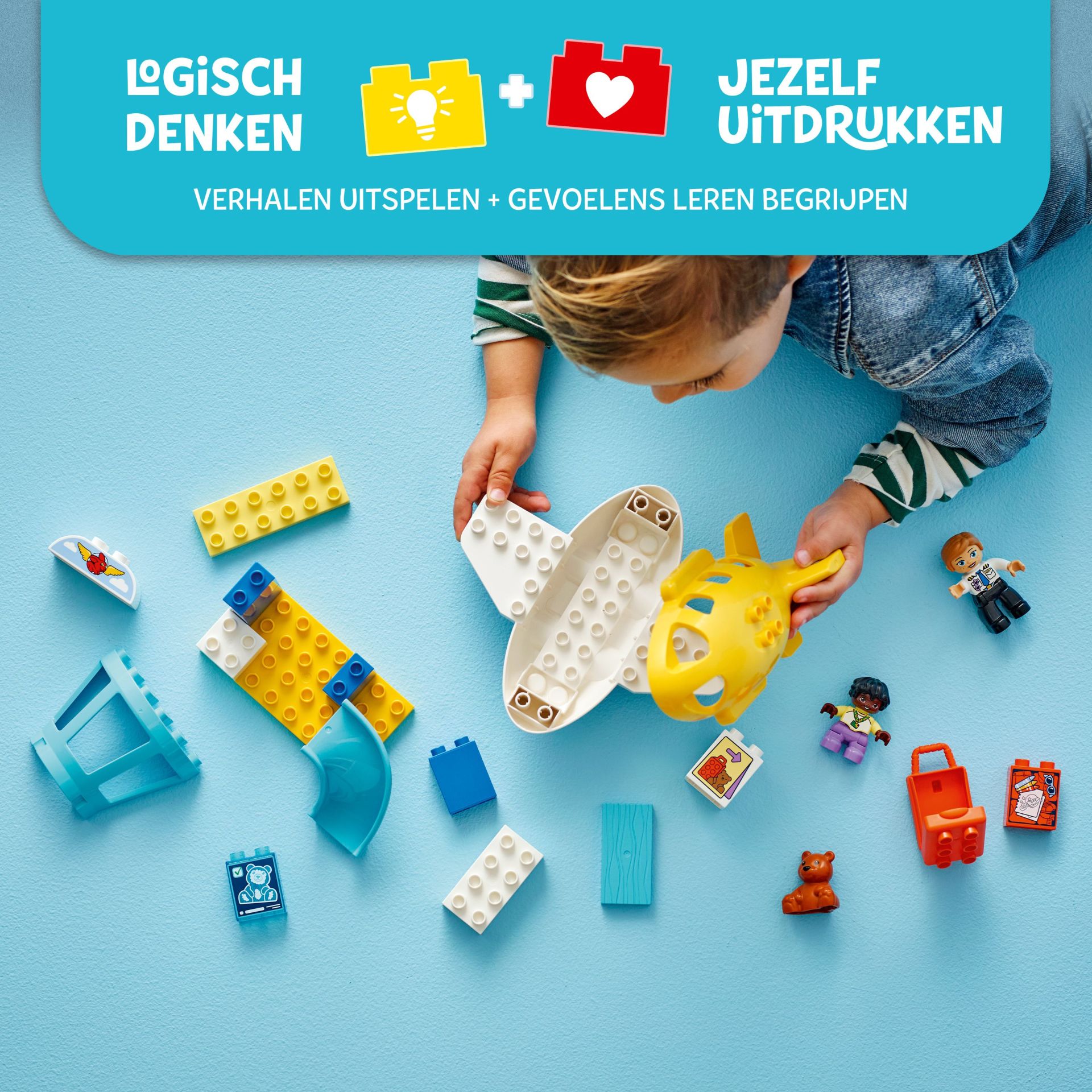 Speelgoed voor jonge kinderen – het fantasiespeelgoed bevat figuren van een kind en een piloot, plus een LEGO® DUPLO® teddybeer, waardoor peuters verschillende personages kunnen kiezen voor rollenspellen