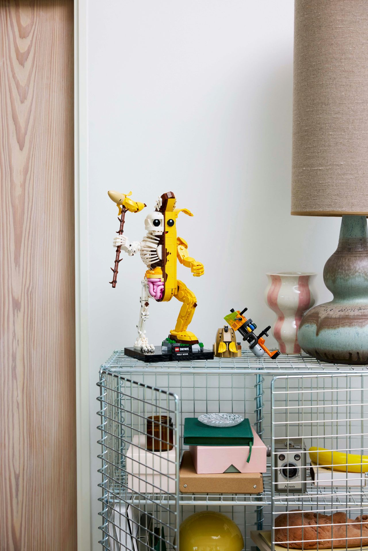 Fortnite fans kunnen helemaal opgaan in avonturen in de echte wereld terwijl ze deze LEGO versie van Peely Bone in elkaar zetten – half banaan en half skelet. Ze zullen het geweldig vinden om de beweegbare armen en polsen van het model te ontdekken, plus de coole accessoires waaronder een Peely Pick Pickaxe, Paint Launcher en Banana Bag Back Bling.