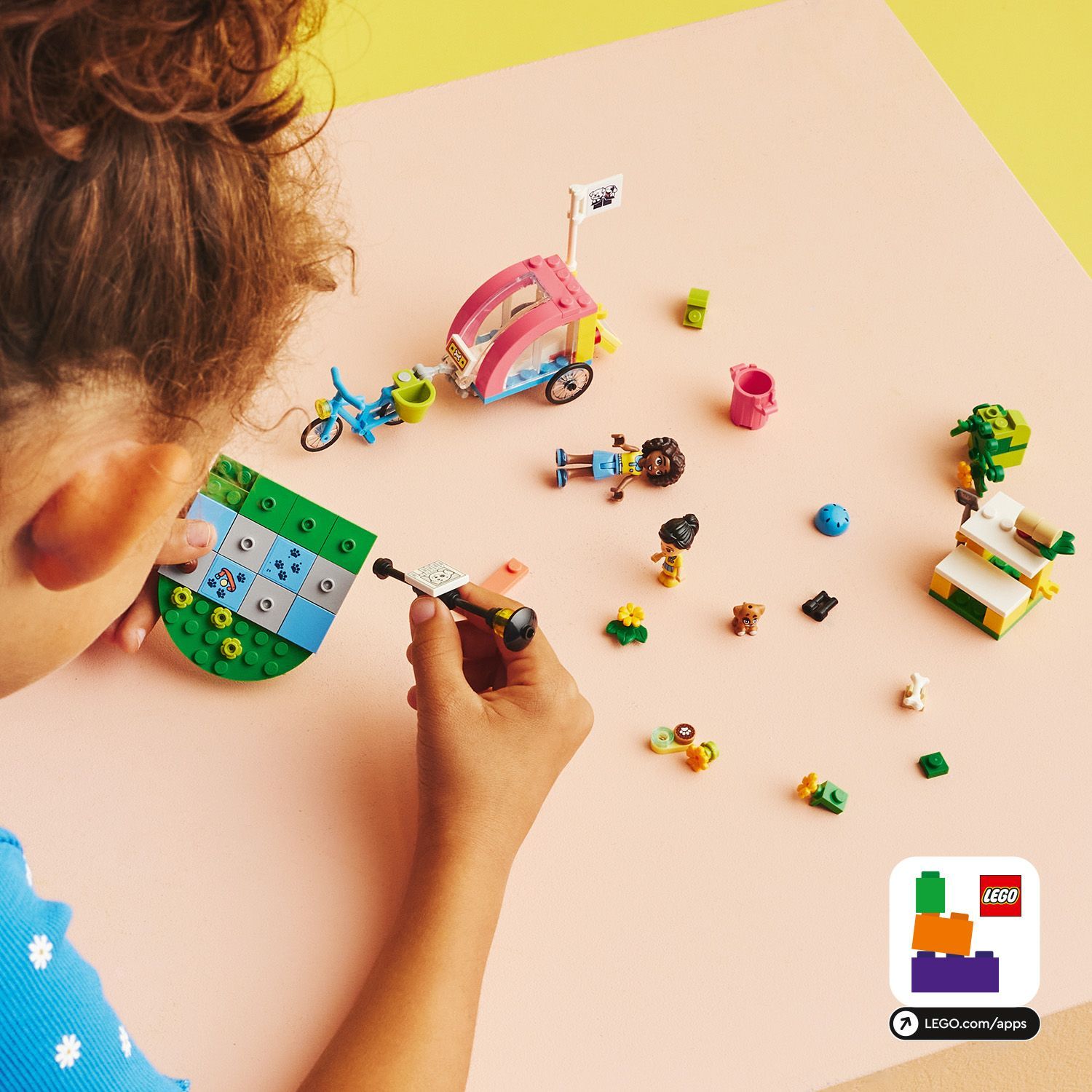 Deze coole LEGO Friends dieren speelset bestaat uit een speelgoedfiets met een afneembare kar die open kan. Ook is er een klein parkgedeelte met een bankje en een struik waar de vermiste puppy onder verstopt zit, plus een heleboel accessoires die kinderen kunnen gebruiken om het hondje te verzorgen. Maak je op voor een leuk en intuïtief bouwavontuur met de LEGO Builder app. Hiermee kunnen kinderen inzoomen en hun modellen draaien in 3D, sets opslaan en hun voortgang bijhouden.