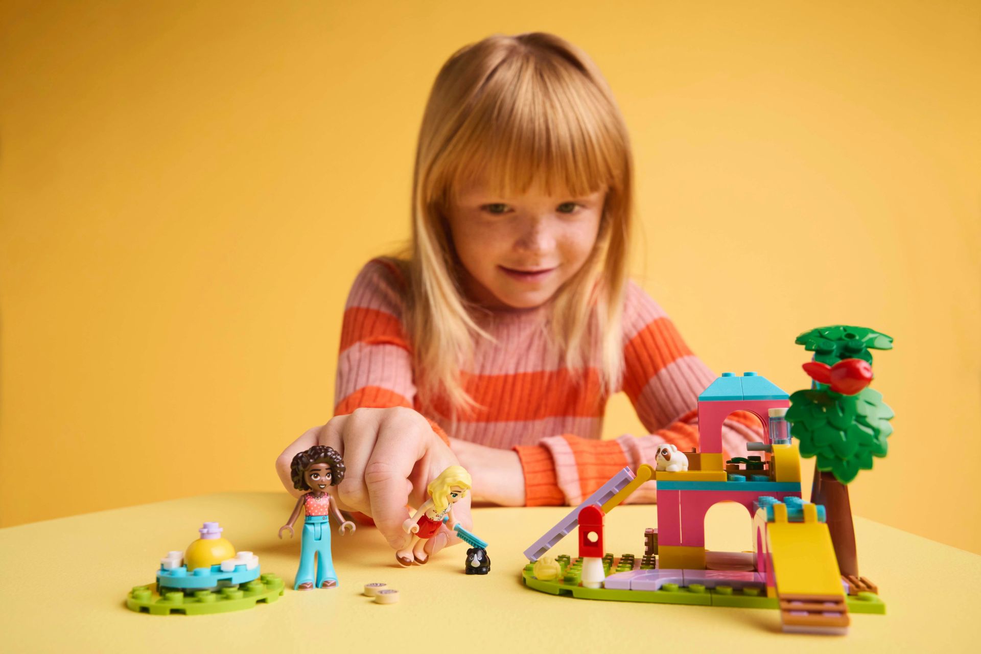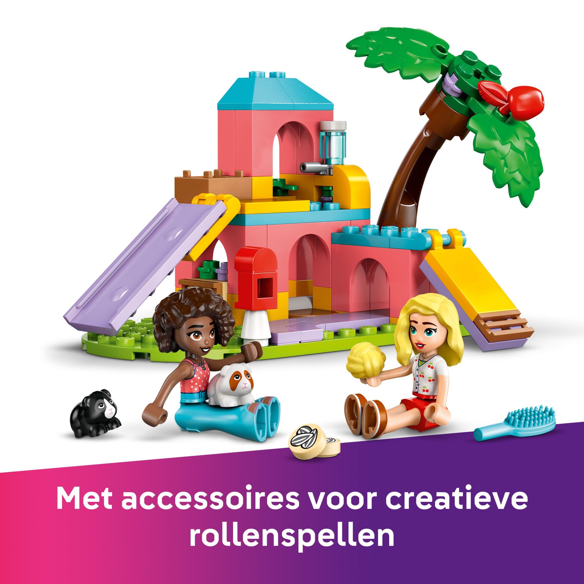 2 LEGO Friends poppetjes en 2 caviafiguren – dit sociaal-emotionele speelgoed biedt volop ruimte voor creativiteit wanneer kinderen verhalen vertellen over Aliya en Matilde, die een band krijgen door hun liefde voor cavia's