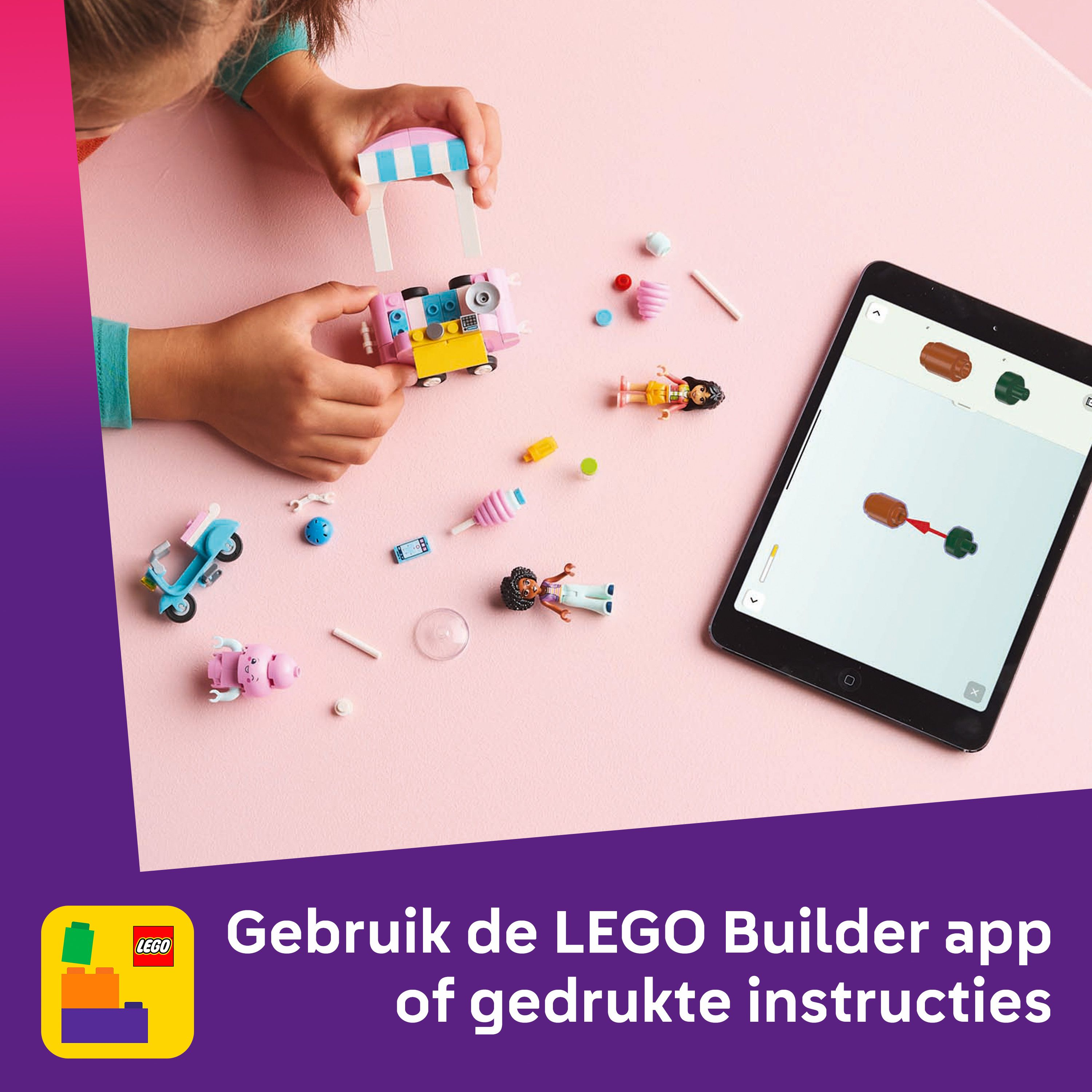 Bekijk ook ander creatief bouwspeelgoed voor kinderen in het LEGO Friends universum met nog veel meer vriendschapsverhalen om te ontdekken (apart verkrijgbaar). Download de LEGO Builder app voor intuïtief bouwplezier. Hiermee kunnen kinderen inzoomen en modellen in 3D draaien, sets opslaan en hun voortgang bijhouden.
