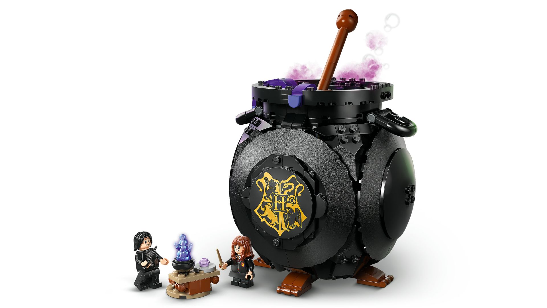 De bouwbare, borrelende ketel kun je tussen het spelen door in je kamer zetten als Harry Potter decoratie of voor Halloween.