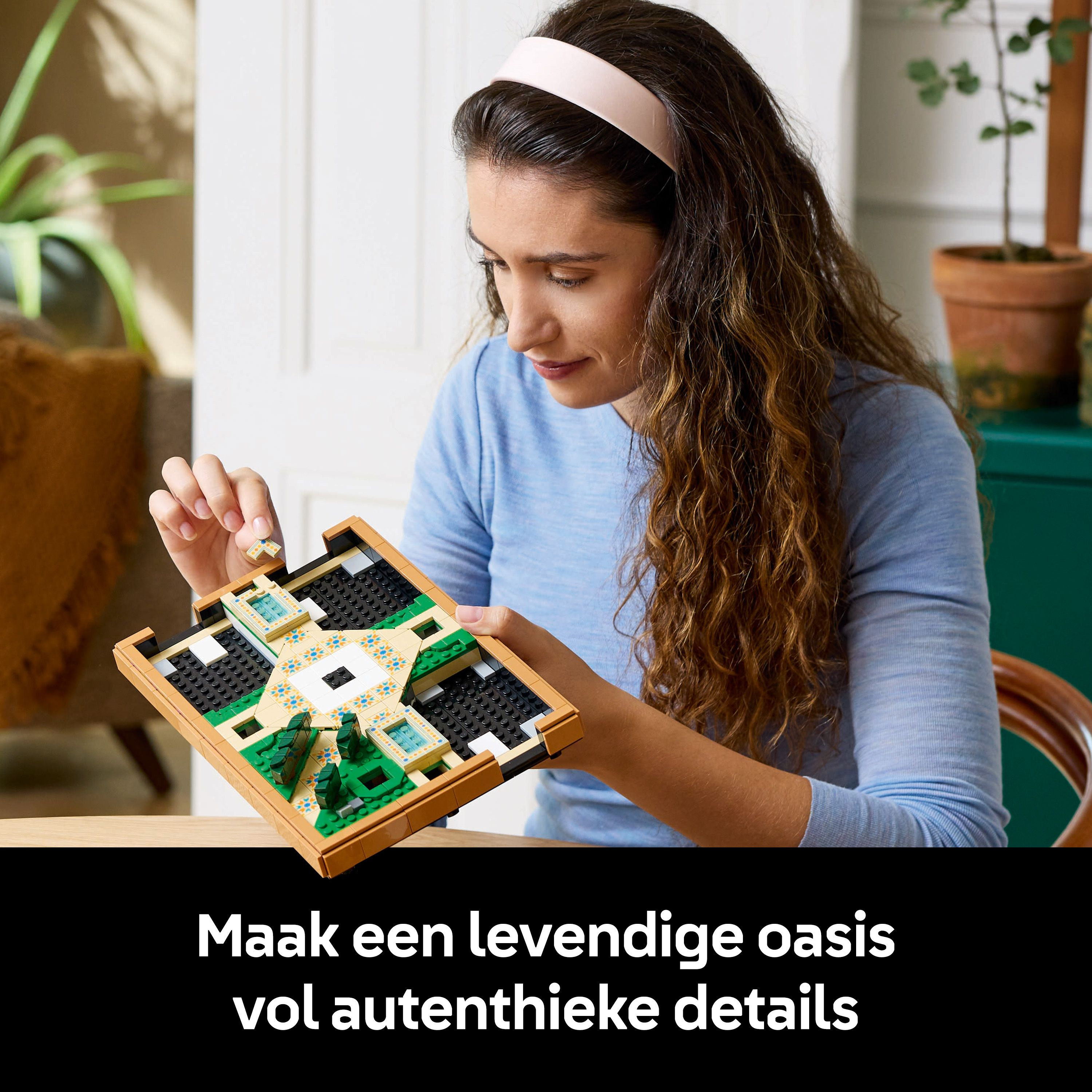 Maak ruimte voor ontspanning met de uitgebreide reeks LEGO bouwsets die speciaal zijn ontworpen voor volwassenen (apart verkrijgbaar). De LEGO Builder app bevat een digitale 3D-versie van de bouwinstructies die bij deze bouwbare LEGO tuin horen.