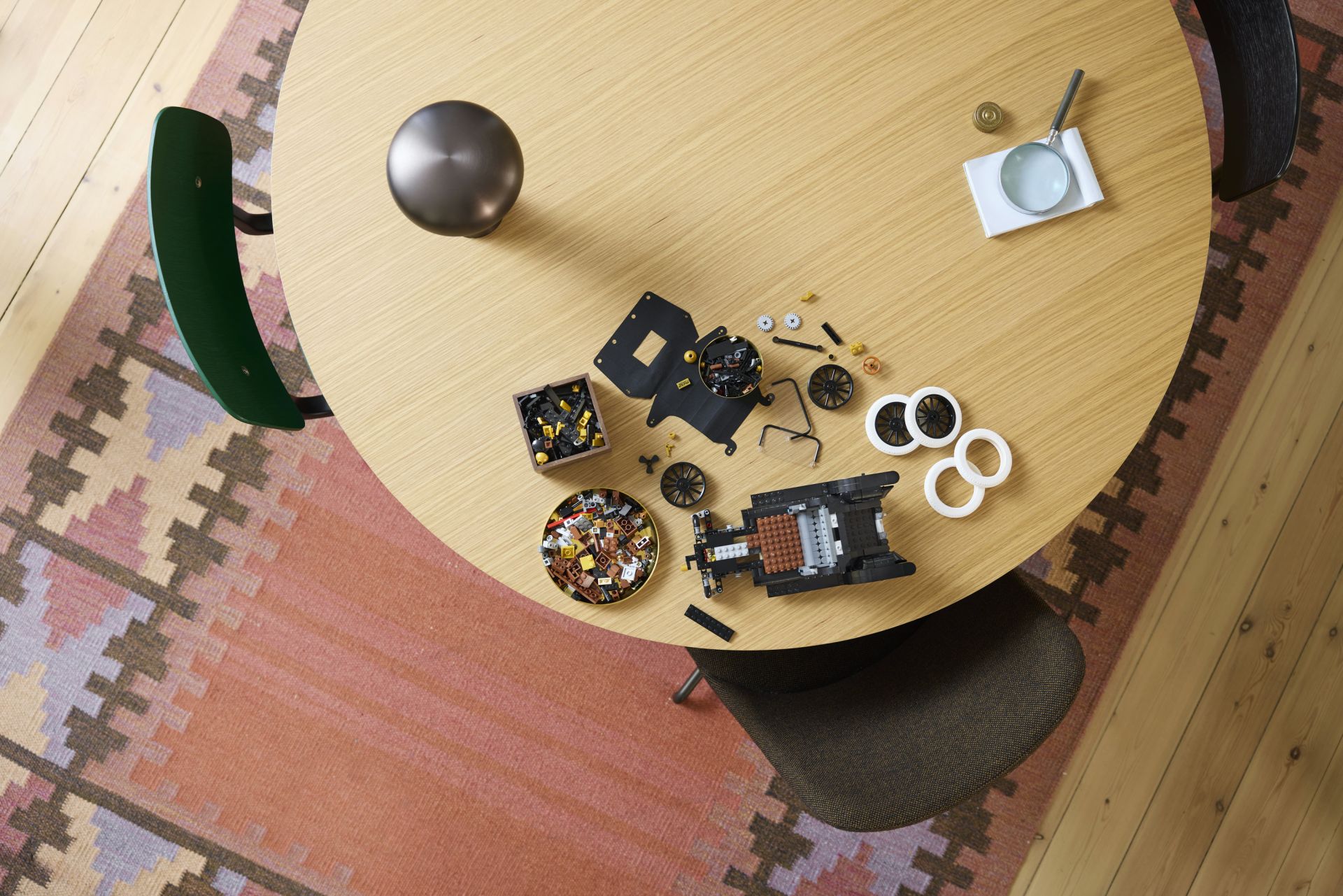 KLASSIEKE AUTO – bouw de iconische auto uit de jaren 1910 na met een glanzend zwarte carrosserie, gouden accenten, een opvouwbaar stoffen dak en hoge spaakvelgen met smalle witte rubberen banden