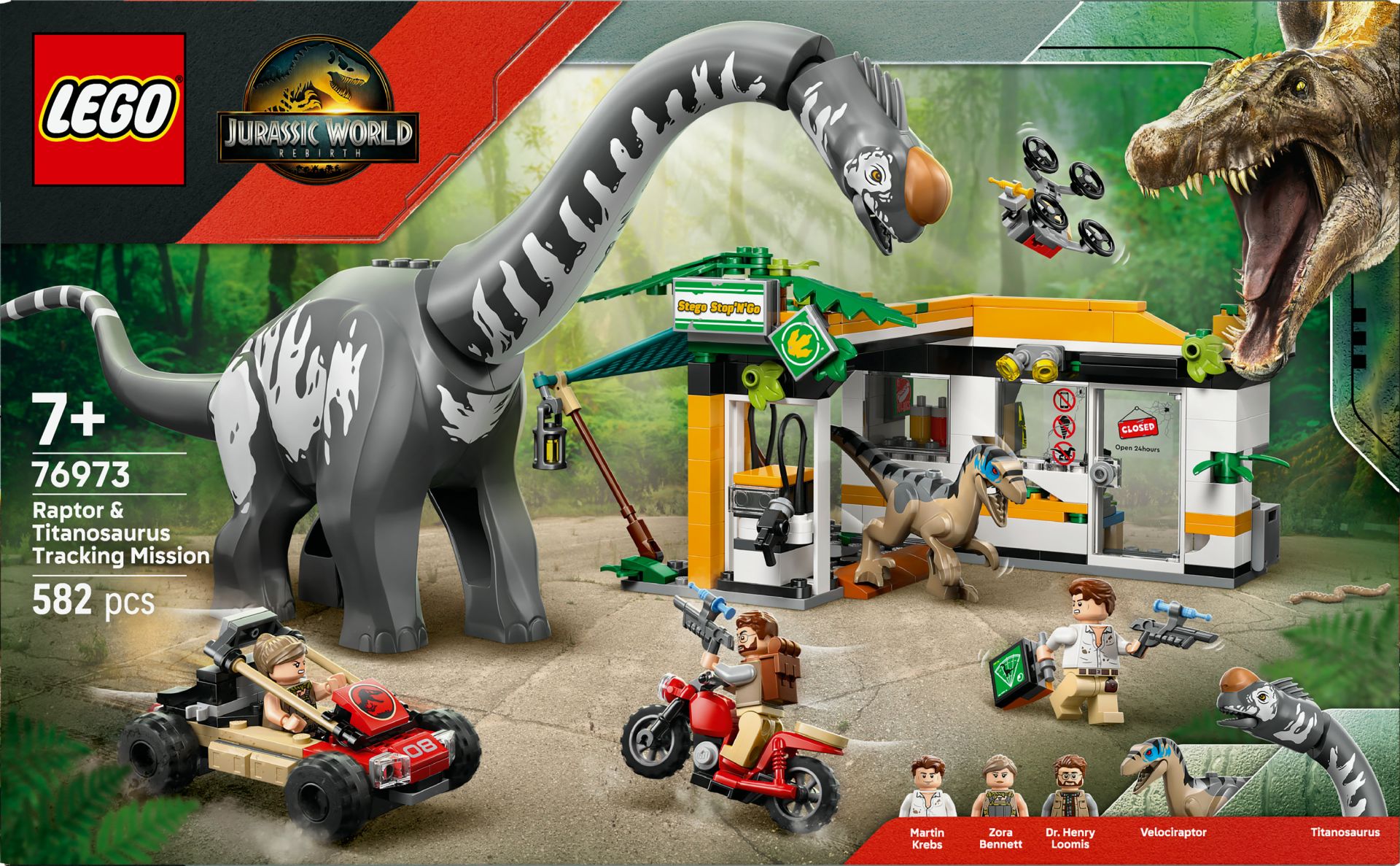 LEGO dinosaurus bouwpakket voor kinderen – verras fans van Jurassic World Rebirth vanaf 7 jaar met deze Raptor en Titanosaurus opsporingsmissie en speel in op de voorkeur van kinderen voor actie en avontuurlijk speelgoed