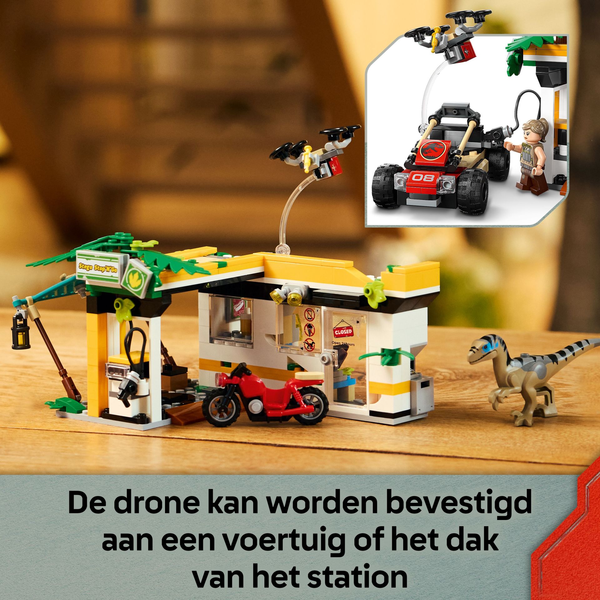 Gedetailleerde speelset – deze LEGO® Jurassic World set bevat een 'oplaadstation', accessoires voor verhalen, een kampeerterrein met boom, een kleine speelgoedmotor, een drone en een terreinwagen met aanhanger