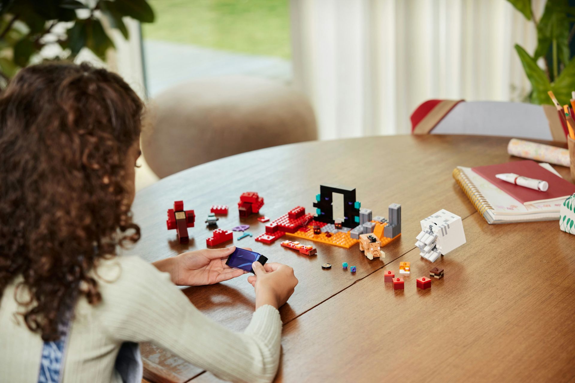 Dit speelgoed bevat een Minecraft figuur van een orkstrijder met een speciale skin die door een Minecraft Nether-portaal reist naar de grens tussen het Helrode bos en de Basalt Delta's. Terwijl spelers het bos verkennen, moeten ze het opnemen tegen een aantal mobs uit het spel: 2 magmakubussen, een kopstotende hoglin en een Minecraft Ghast die schijven uit zijn bek schiet. Voor extra spanning heeft de Ghast de reputatie portalen te vernietigen, zodat spelers niet meer weg kunnen!