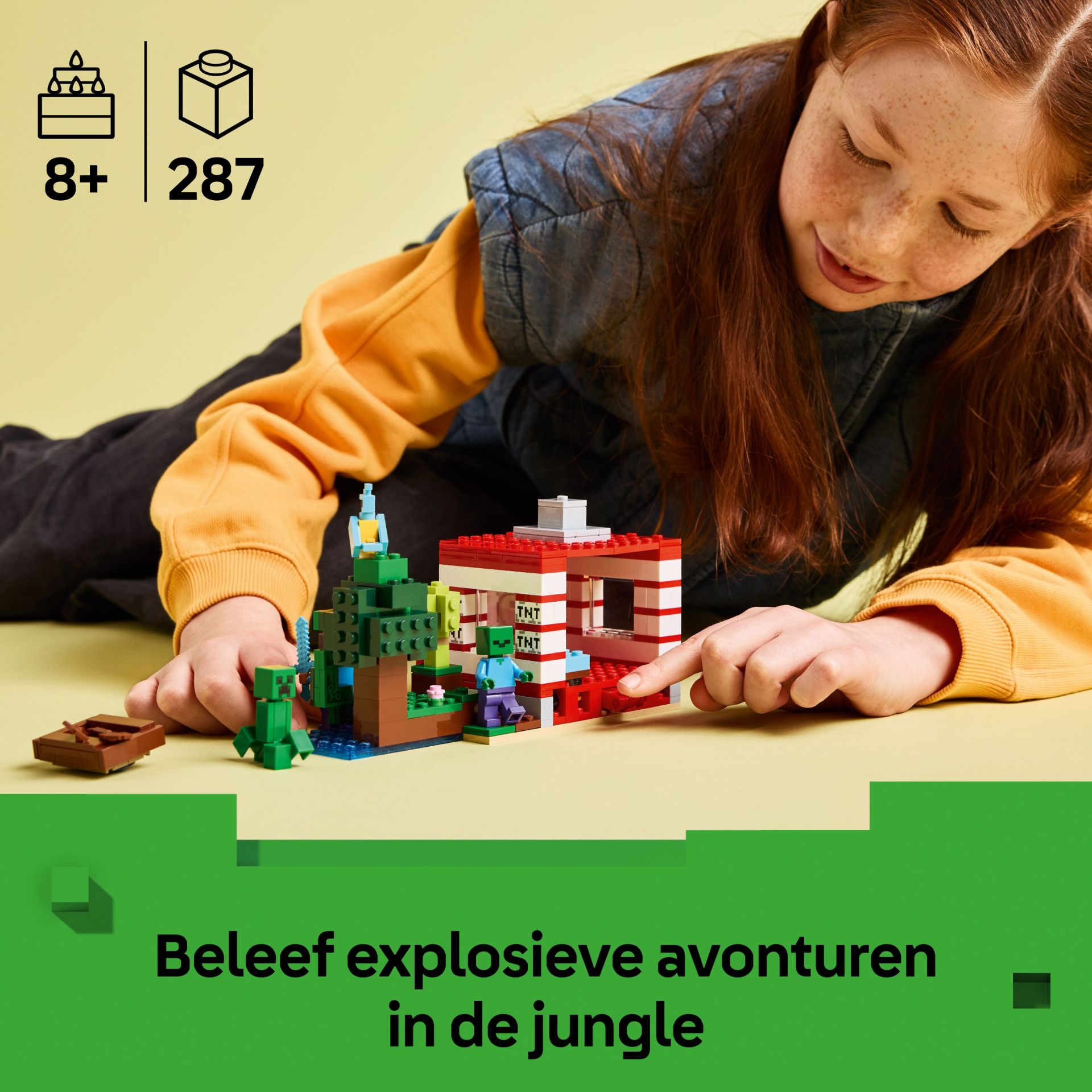 LEGO® Minecraft® speelgoedhuis – geef kinderen explosieve Minecraft actie in handen met het TNT junglehuis, een verzamelset met gamingthema voor meisjes en jongens vanaf 8 jaar