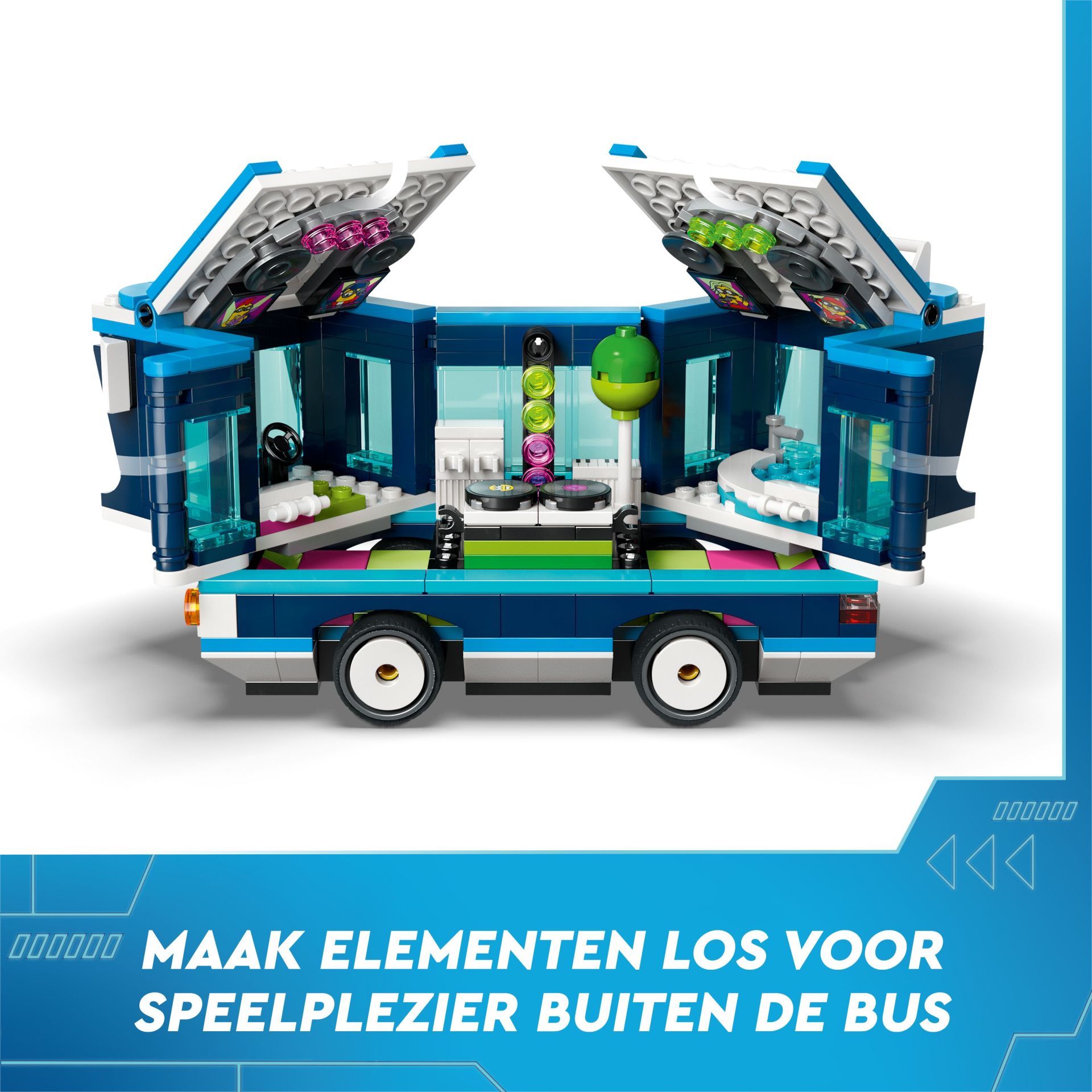 - Veelzijdig LEGO voertuig: de bus heeft een bestuurdersstoel en een handvat op het dak (waar Gus zich aan kan vasthouden) en kan aan één kant worden opengeklapt, zodat een DJ-station, een dansvloer en een bubbelbad voor feestjes zichtbaar zijn.