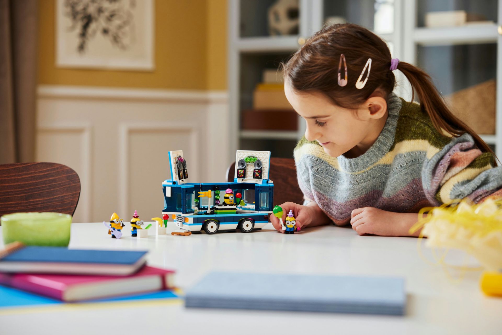 - Speelgoed bus uit de film: het is feest voor kinderen in de LEGO Verschrikkelijke ikke 4 Muzikale feestbus van de Minions, het leuke voertuig uit Illuminations Verschrikkelijke ikke 4 voor jongens en meisjes vanaf 7 jaar.
