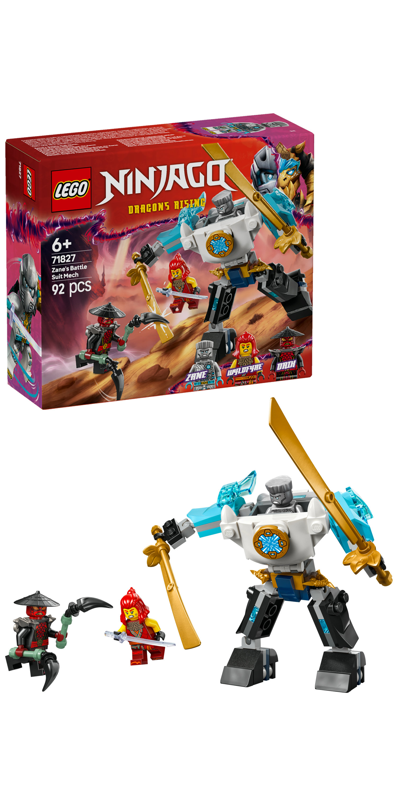 LEGO NINJAGO speelgoed voor 6 jaar en ouder – met Zane's strijdmecha kunnen jongens en meisjes vanaf 6 jaar spannende scènes uit seizoen 3 van de tv-serie NINJAGO De Drakenstrijd naspelen