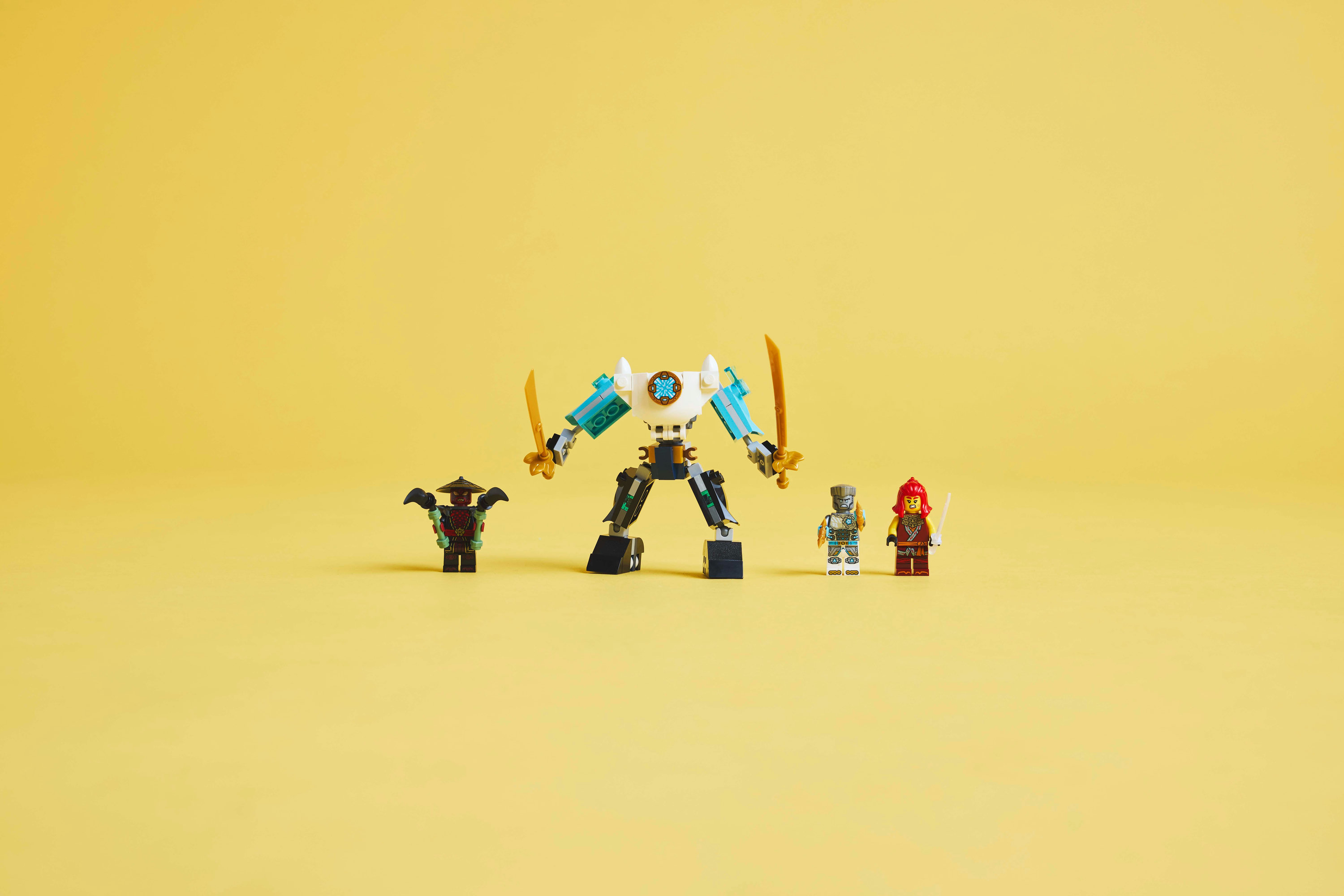 Verstelbare speelgoedmecha – Zane's strijdmecha heeft verstelbare armen, benen en handen, een bovenlichaam dat 360 graden kan draaien, een borstkas die open kan om een minifiguur in te plaatsen en 2 grote zwaardaccessoires