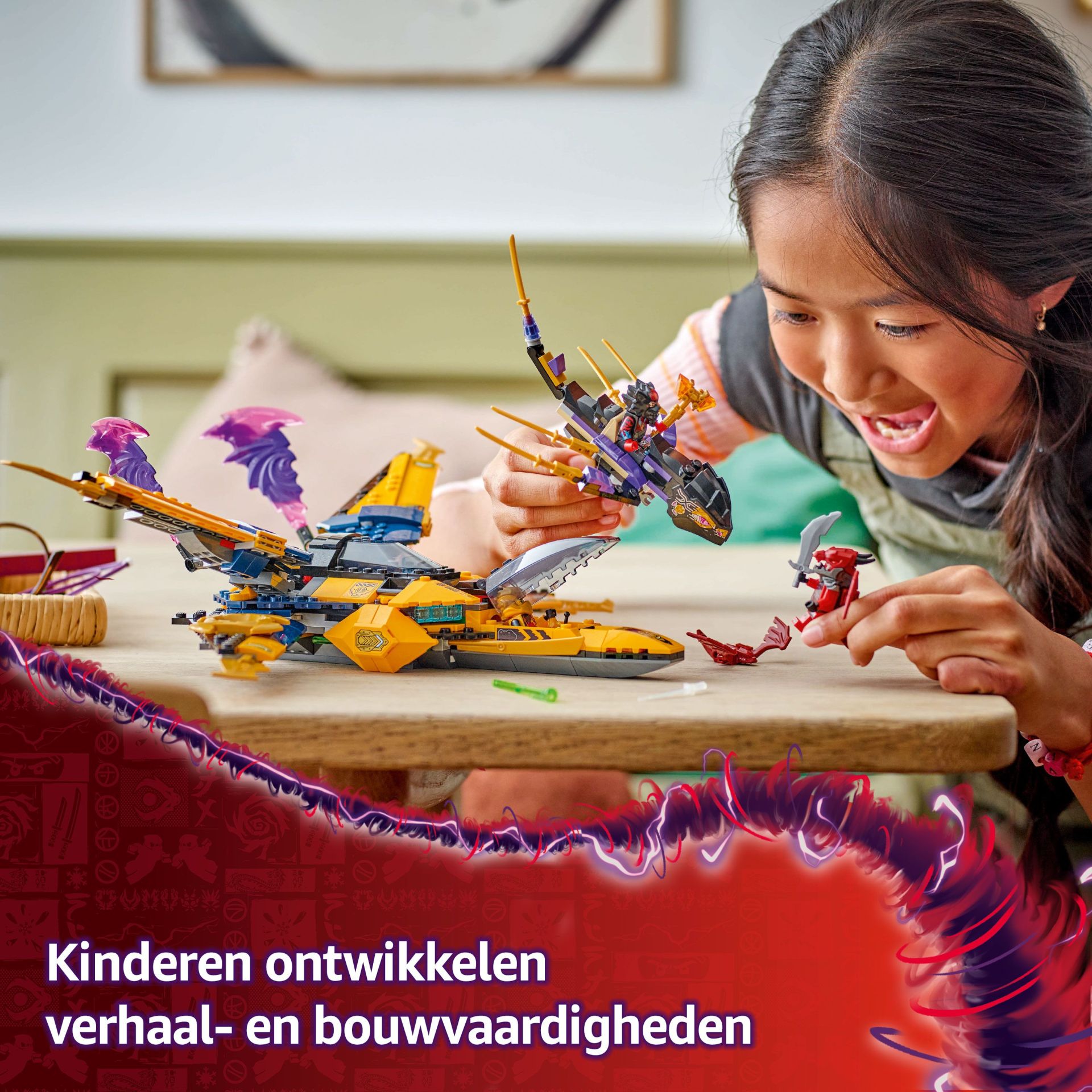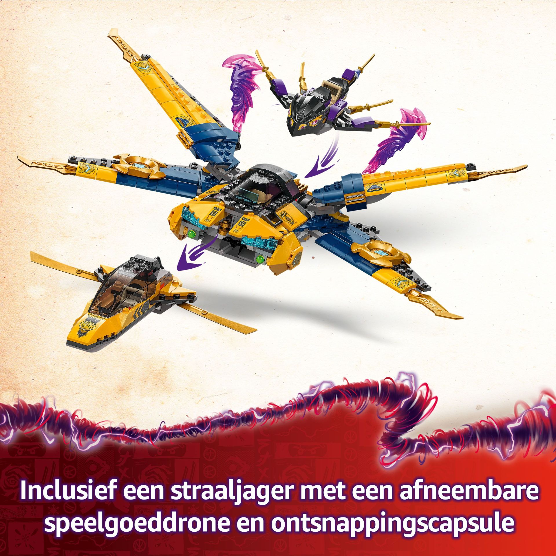 Speelgoedvliegtuig voor kinderen – jongens en meisjes vanaf 8 jaar kunnen actiescènes in de lucht uit seizoen 3 van de tv-serie NINJAGO® De Drakenstrijd naspelen met Ras en Arins superstormvliegtuig