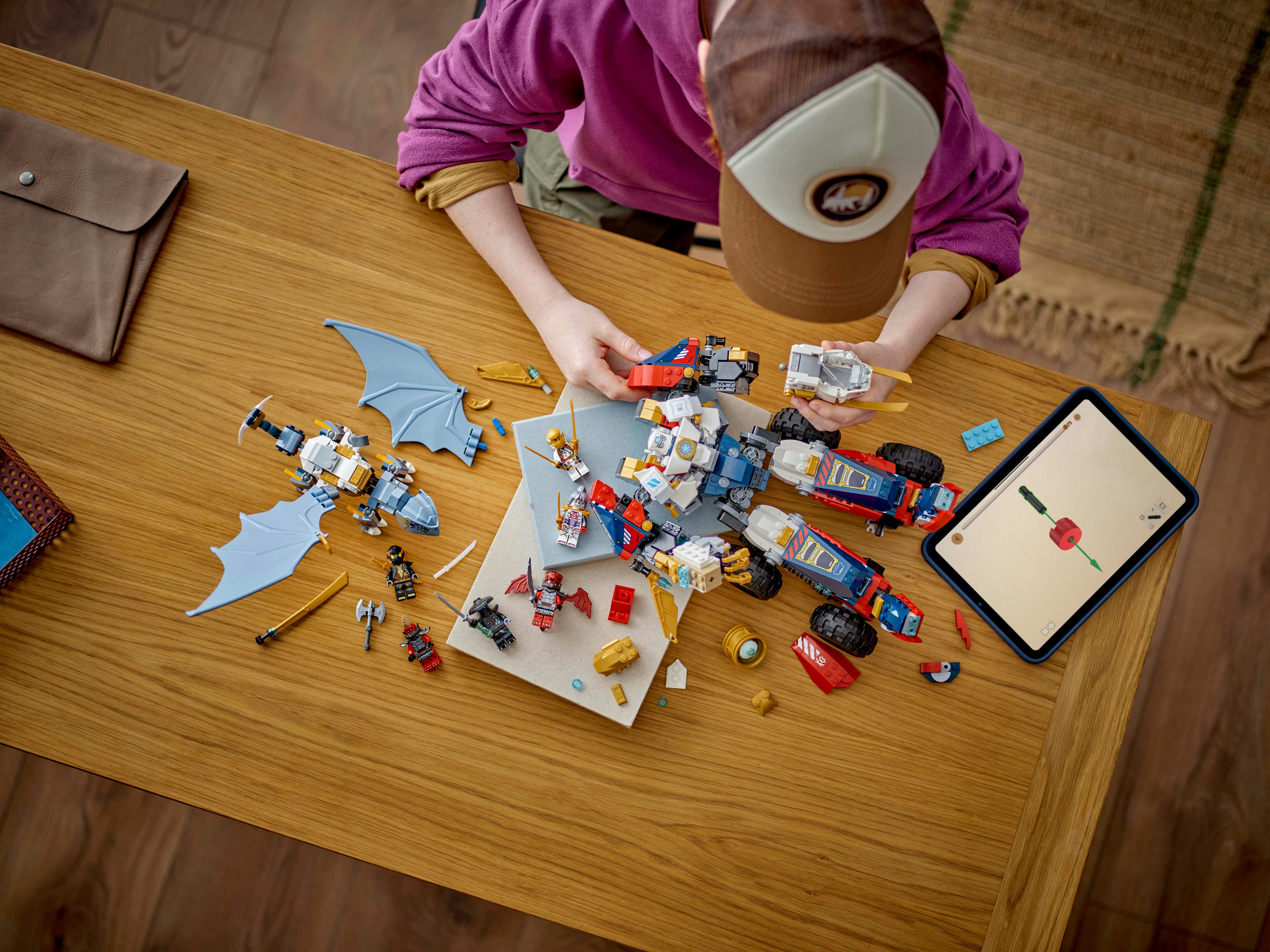 Afneembare ninjamodellen – Zane's ultra-combomecha kan worden opgesplitst in 4 kleinere modellen: een vliegtuig, een auto, een actiefiguur en een draak