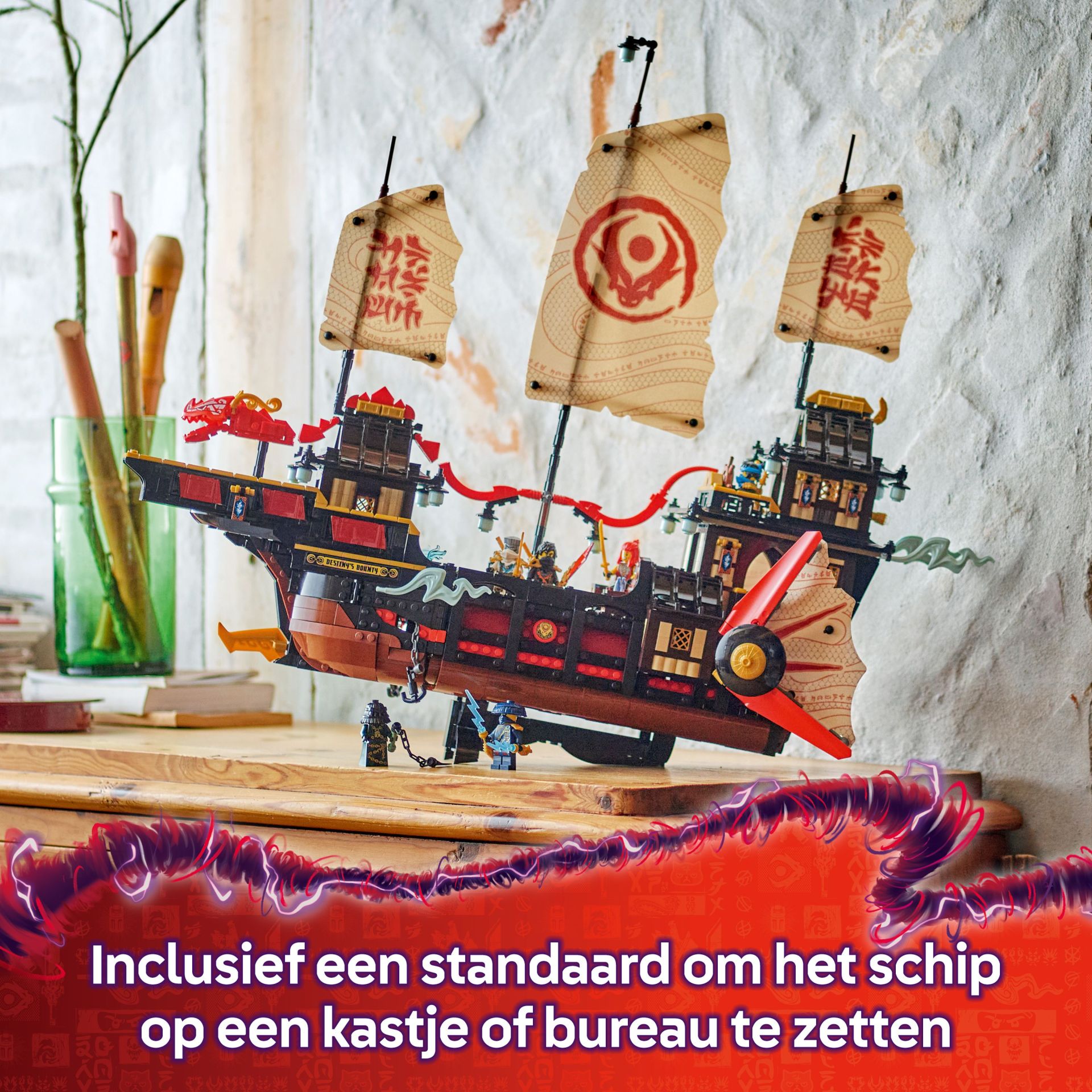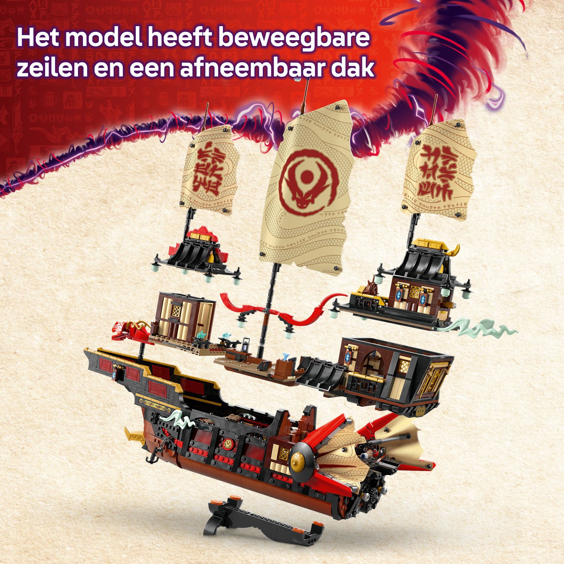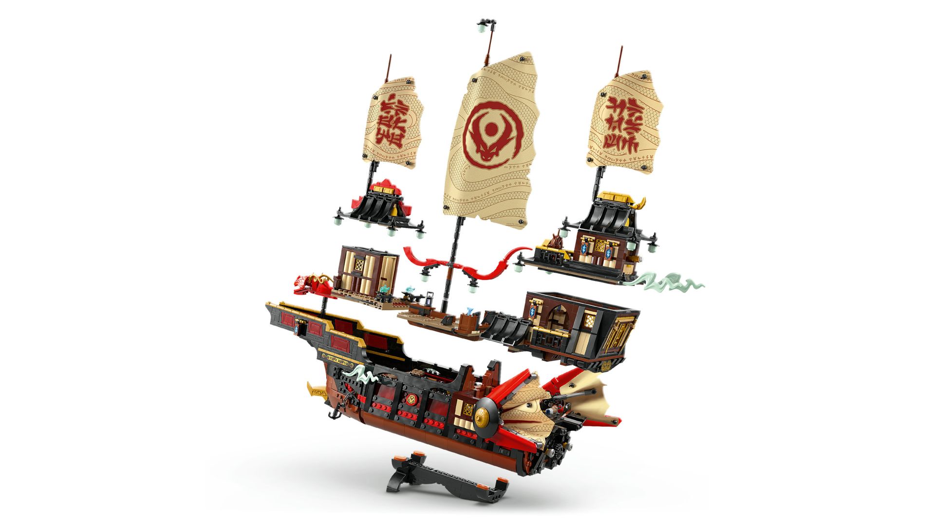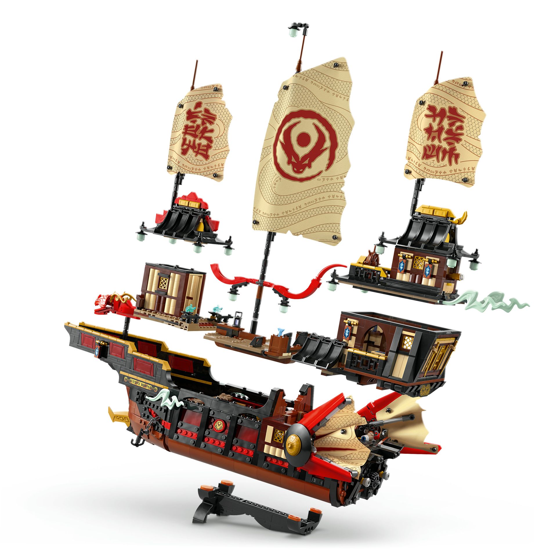 Deze set bevat alles wat ninjafans nodig hebben om verhalen uit seizoen 3 van de tv-serie NINJAGO De Drakenstrijd na te spelen: een tandwiel om de zeilen te openen en te sluiten, afneembare daken en vloeren om toegang te krijgen tot het interieur van het schip. Er is zelfs een sushibar en een tafel in de hoofdcabine die kan worden opgeklapt om een geheime computer te ontdekken.