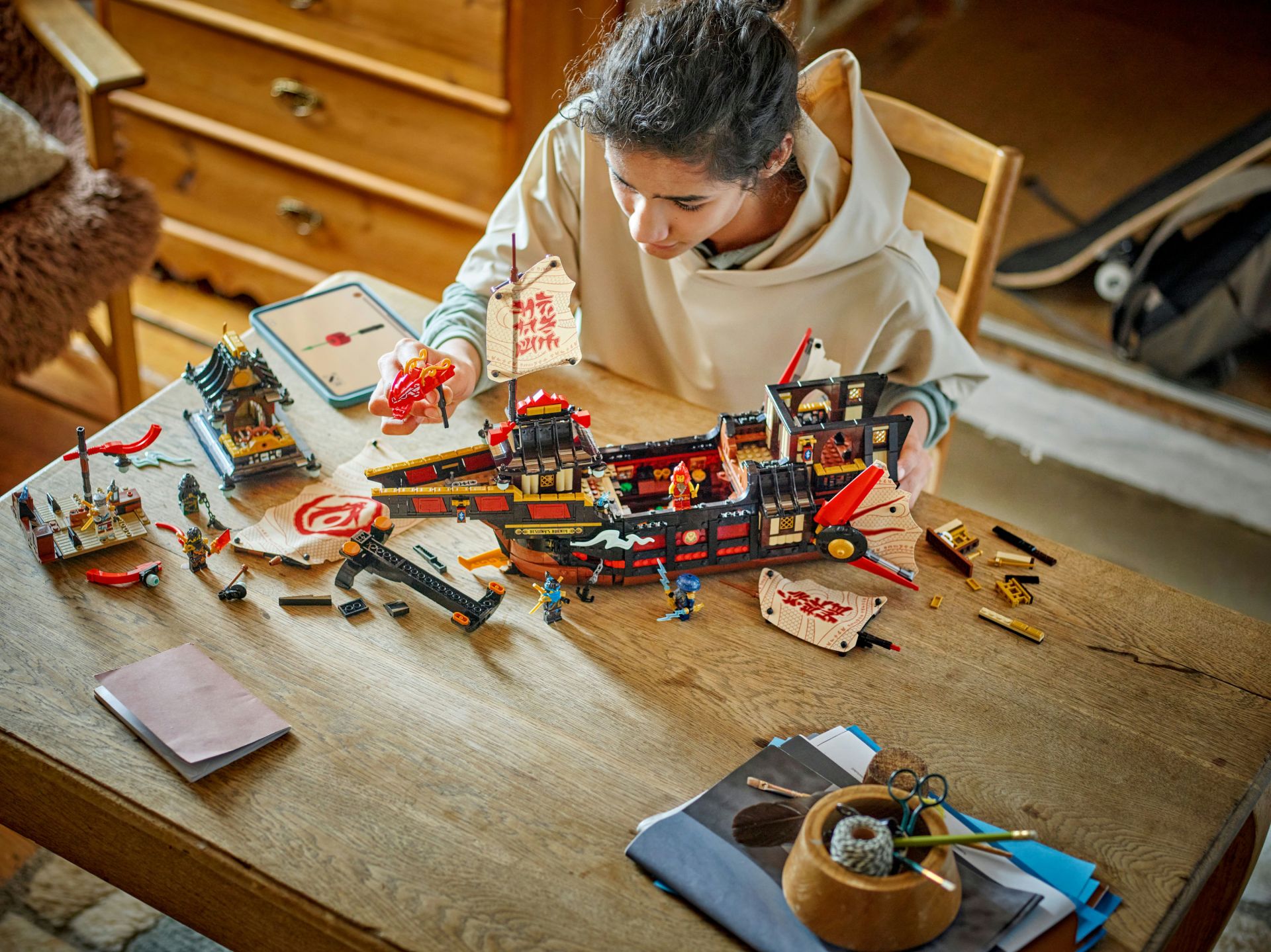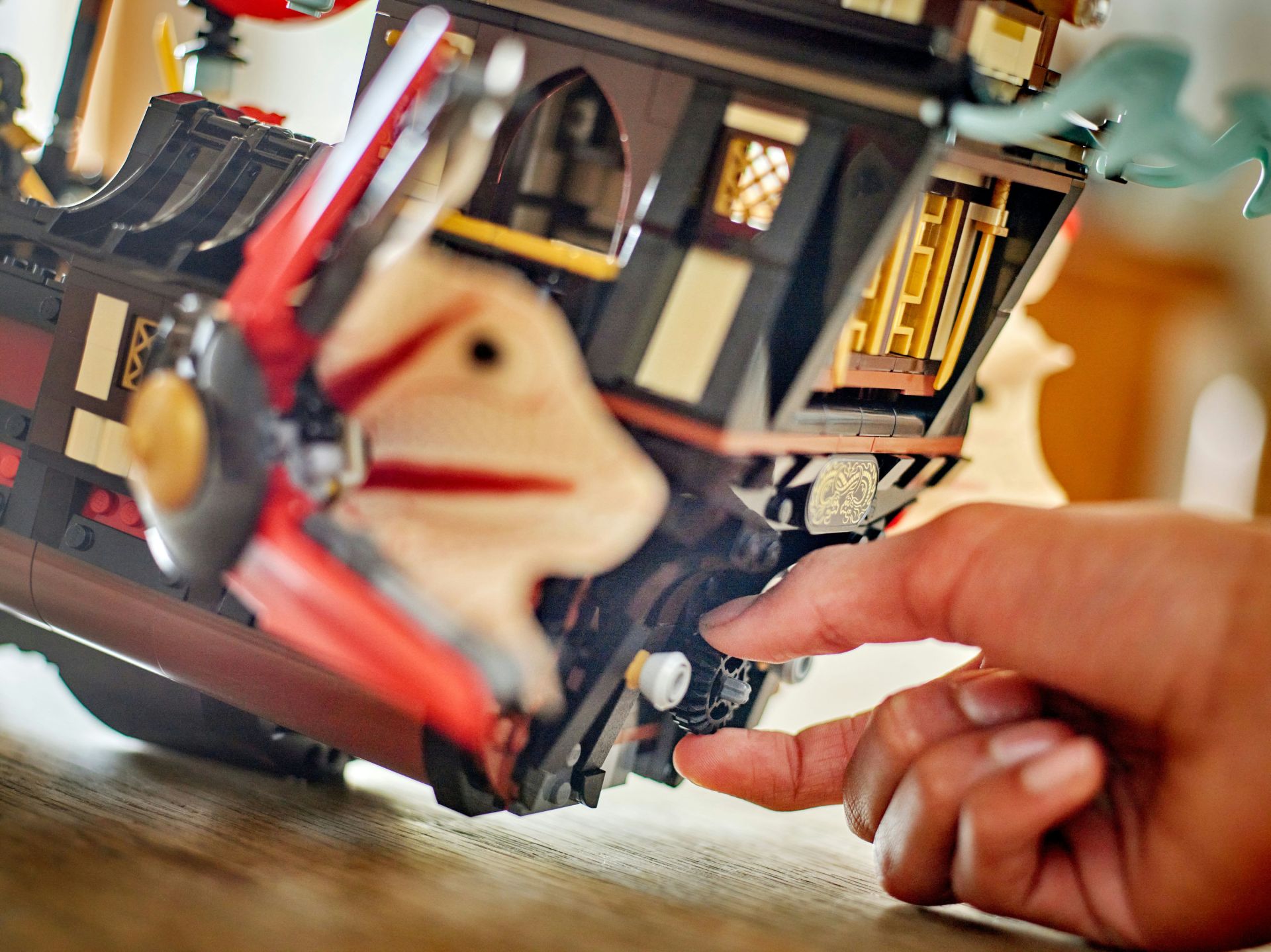 Interactieve speelset met schip – NINJAGO® fans draaien aan een tandwiel om de zeilen te bewegen, verwijderen daken en vloeren om toegang te krijgen tot het interieur en een sushibar en klappen een tafel op om een geheime computer te ontdekken