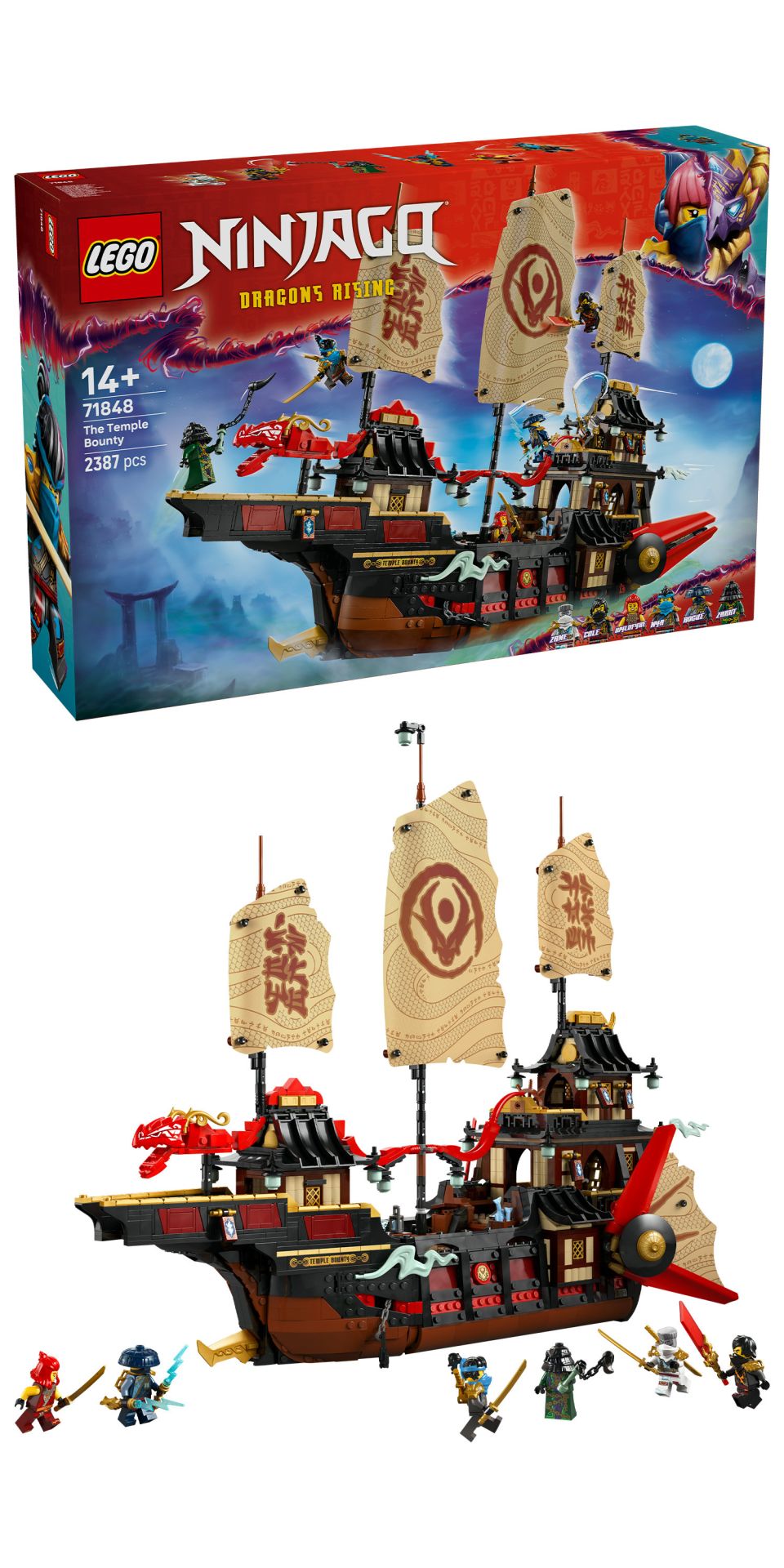Groot NINJAGO model om mee te spelen en neer te zetten – ninjafans van 14 jaar en ouder kunnen de actie uit seizoen 3 van de NINJAGO Dragons Rising tv-serie naspelen met het De Tempel Bounty schip speelgoed voor kinderen