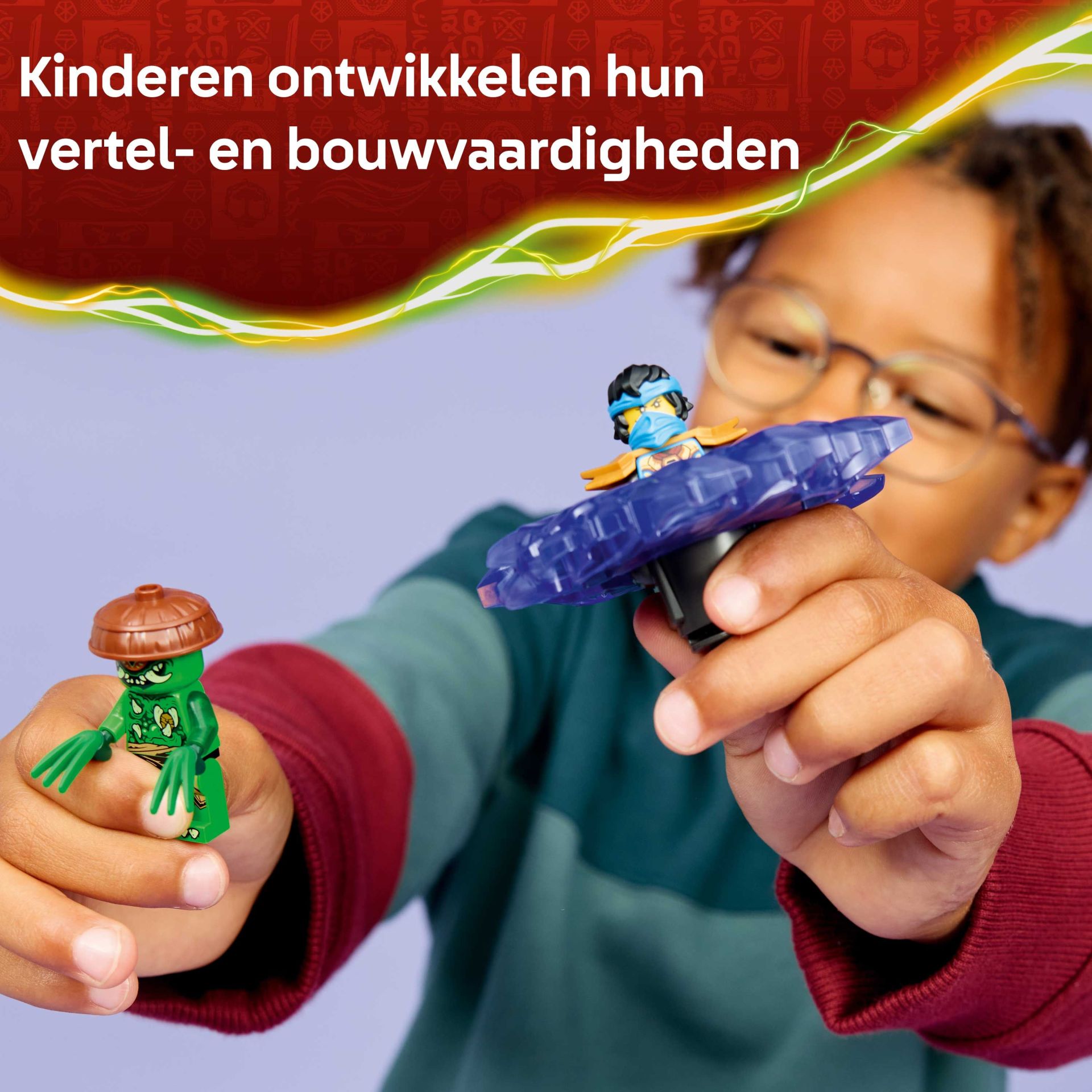 2 NINJAGO® MINIFIGUREN – dit avonturenspeelgoed voor kinderen wordt geleverd met Nya en een gemeen mutatiemonster dat in de spinner kan worden geplaatst, zodat kinderen de spannende strijd tussen goed en kwaad kunnen naspelen
