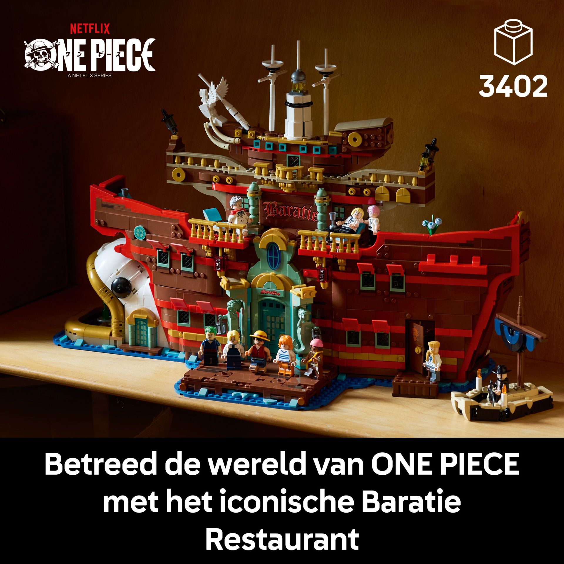 ONE PIECE verzamelset met 3402 onderdelen – het voltooide model is ca. 35 cm hoog, 54 cm breed en 27 cm diep