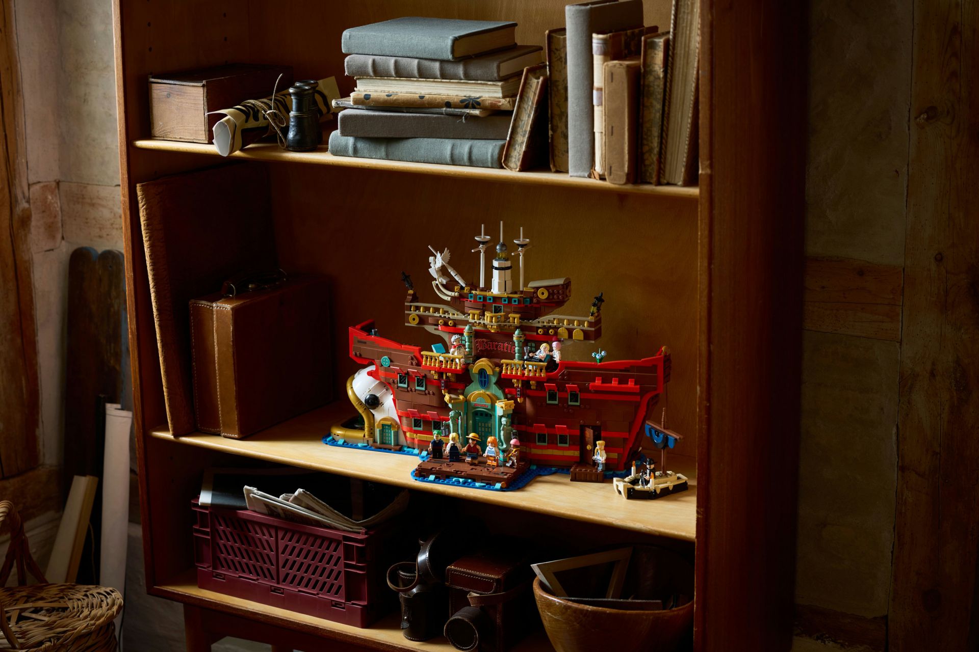 Authentieke accessoires – de set bevat veel accessoires van eten en drinken, een transponderslak (slaktelefoon) en de bekende boot van Mihawk