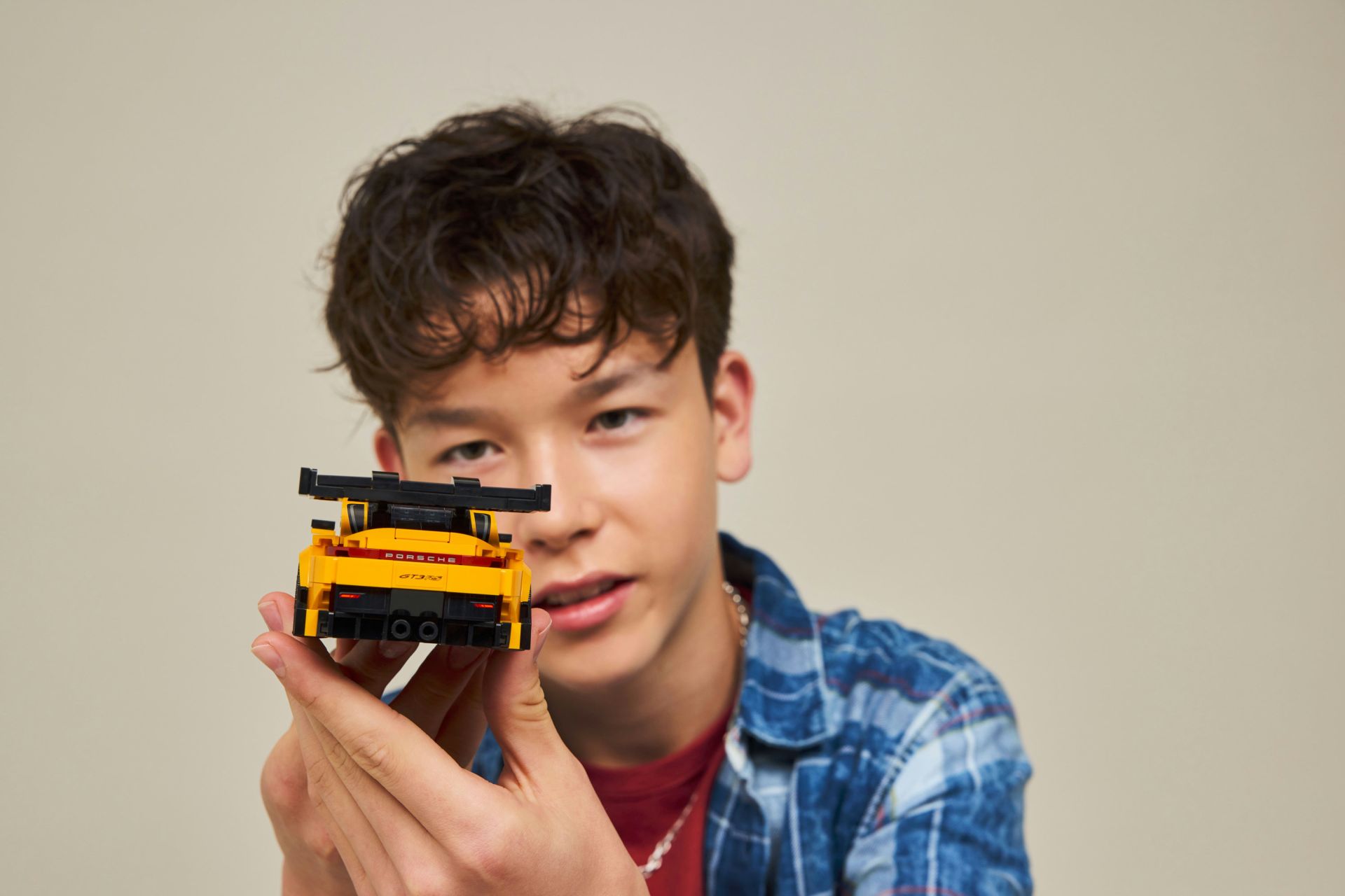 Dit Porsche 911 GT3 RS speelgoed bevat de beroemde achtervleugel, luchtinlaat op de motorkap, opvallende koplampen en speciale velgen. De LEGO autoset is inclusief een minifiguur van een coureur met een helm en een rode Porsche Track Day Experience outfit. Kinderen kunnen de minifiguur achter het stuur plaatsen en hun eigen race-actie naspelen.