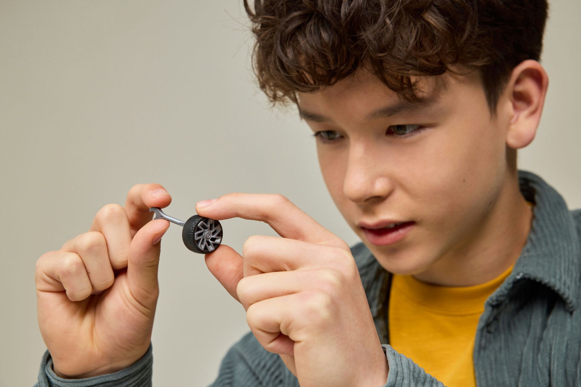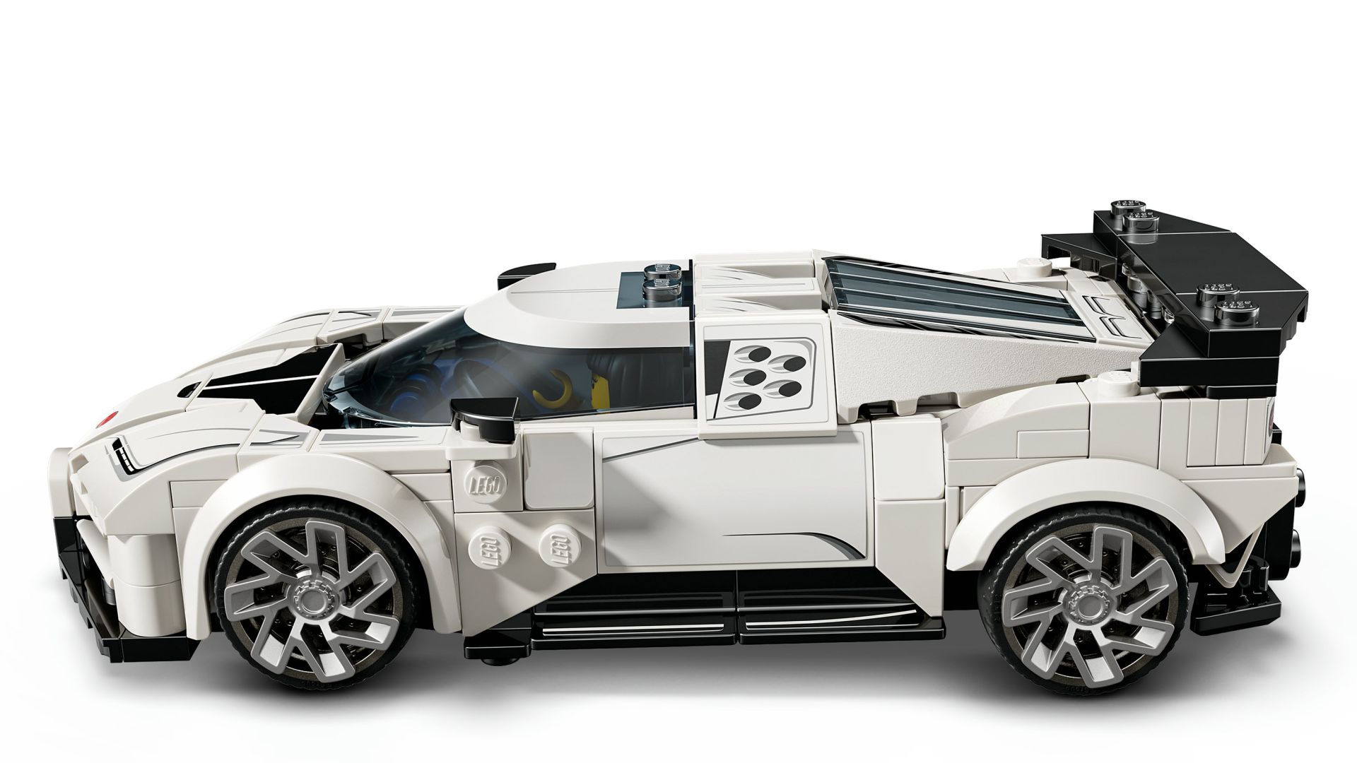 Het Bugatti LEGO® automodel bevat de 5 ronde luchtinlaten van de Centodieci hyper sportauto aan de zijkanten, de unieke velgen, koplampen, hoefijzervormige grille, overhangende achterspoiler en 4 uitlaatpijpen achter. De LEGO autoset is inclusief een minifiguur van een Bugatti coureur die kinderen achter het stuur kunnen zetten voor spannende races.