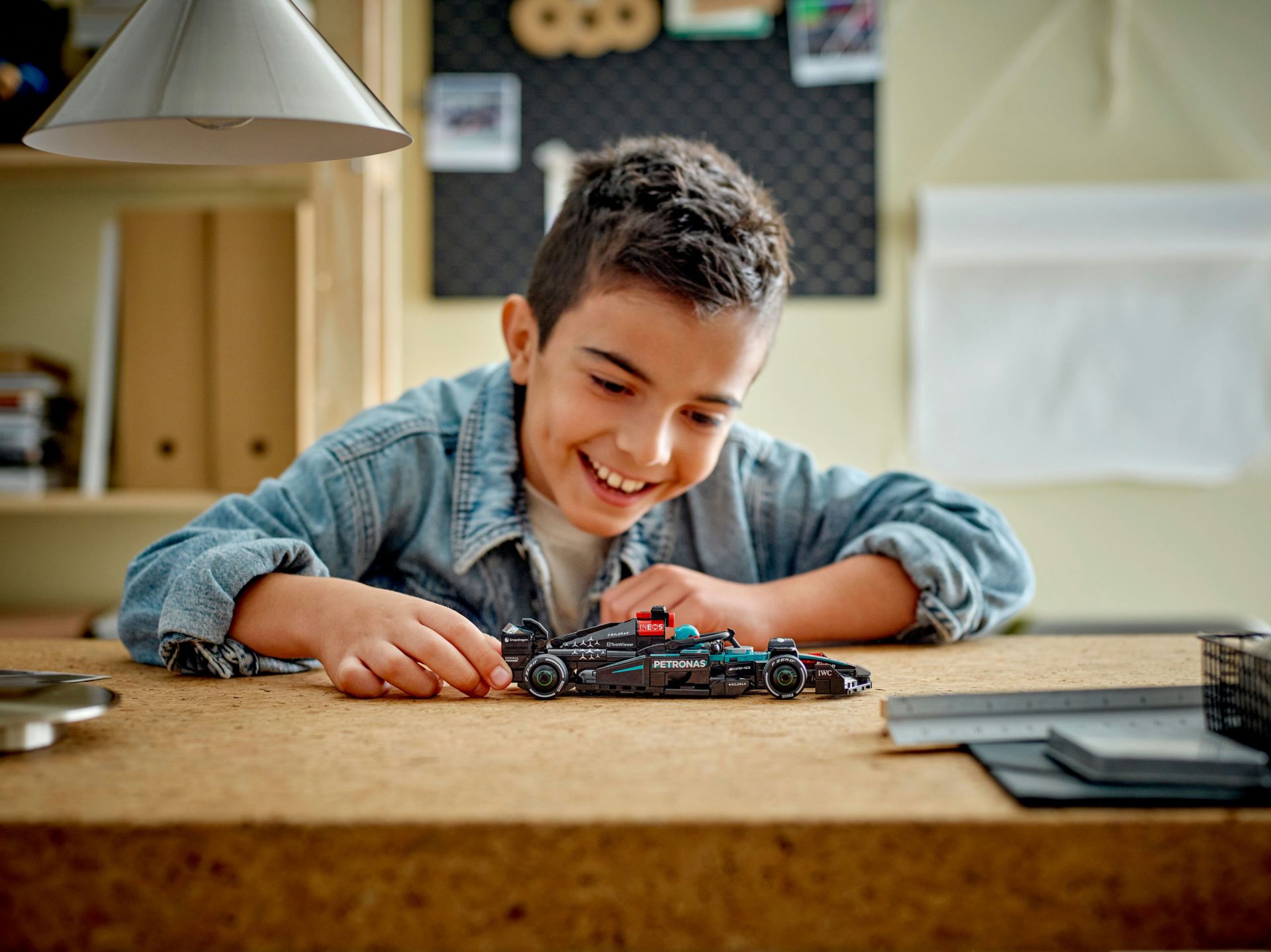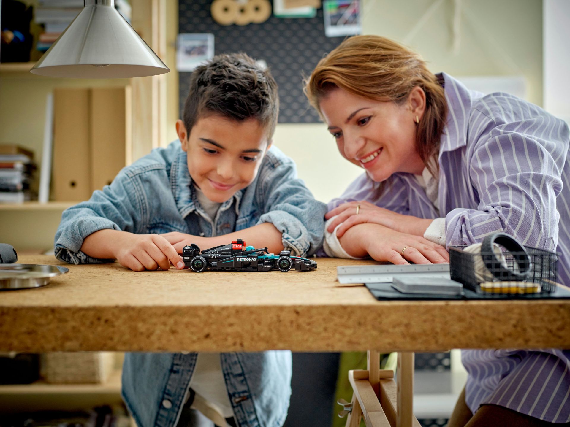 - F1 racewagen schaalmodel – nadat kinderen hebben genoten van het naspelen van raceverhalen met het Mercedes-AMG PETRONAS F1 Team speelgoed kunnen ze hem op een plank of nachtkastje neerzetten