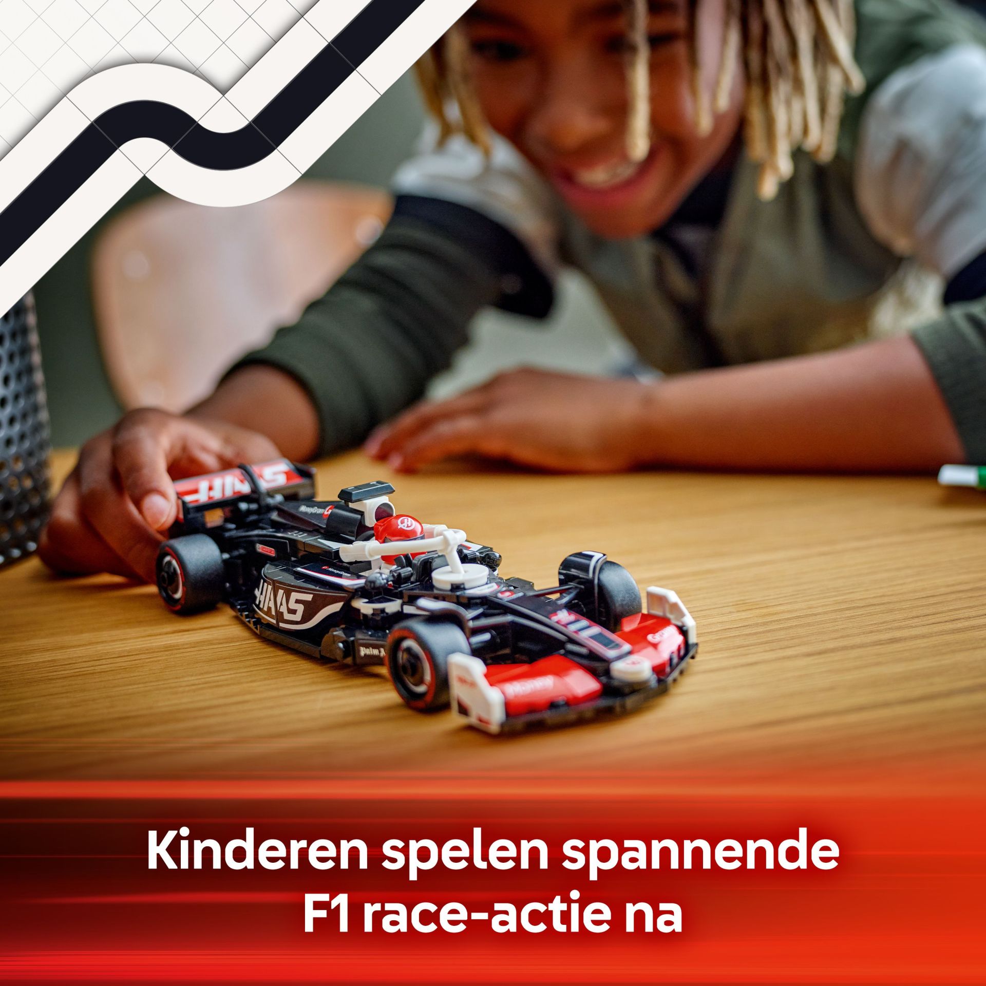 Met het LEGO Speed Champions MoneyGram Haas F1 Team VF-24 racewagen (77250) auto bouwpakket voor kinderen kunnen jongens en meisjes vanaf 10 jaar de spanning van de Formule 1 races ervaren. Kinderen en volwassen autoverzamelaars kunnen een F1 racewagen bouwen, neerzetten en ermee racen met ontwerpdetails van de echte versie die deelnam aan het Formule 1 seizoen in 2024. De Formule 1 auto heeft een cockpit die opent door de halo-balk op te tillen, een achtervleugel, wishbone-ophanging, sponsorstickers en bredere achterbanden bedrukt met 'Pirelli'. De F1 wagen wordt ook geleverd met een minifiguur van een F1 coureur in een MoneyGram Haas F1 Team outfit en een helm om in de cockpit te plaatsen en mee te racen. Met LEGO Speed Champions sets kunnen kinderen en racefans modellen bouwen van een aantal van de meest iconische voertuigen ter wereld, waaronder andere Formule 1 auto's (apart verkrijgbaar) uit het kampioenschap van 2024. Elke LEGO auto speelset kan worden gemaakt met behulp van gedrukte bouwinstructies of de LEGO Builder app om jou en je kind te begeleiden op een leuk bouwavontuur. Dit leuke auto speelgoed voor 10 jaar en ouder is een fantastisch cadeau voor jongens, meisjes en volwassenen en die dol zijn op motorsport en bouwen.