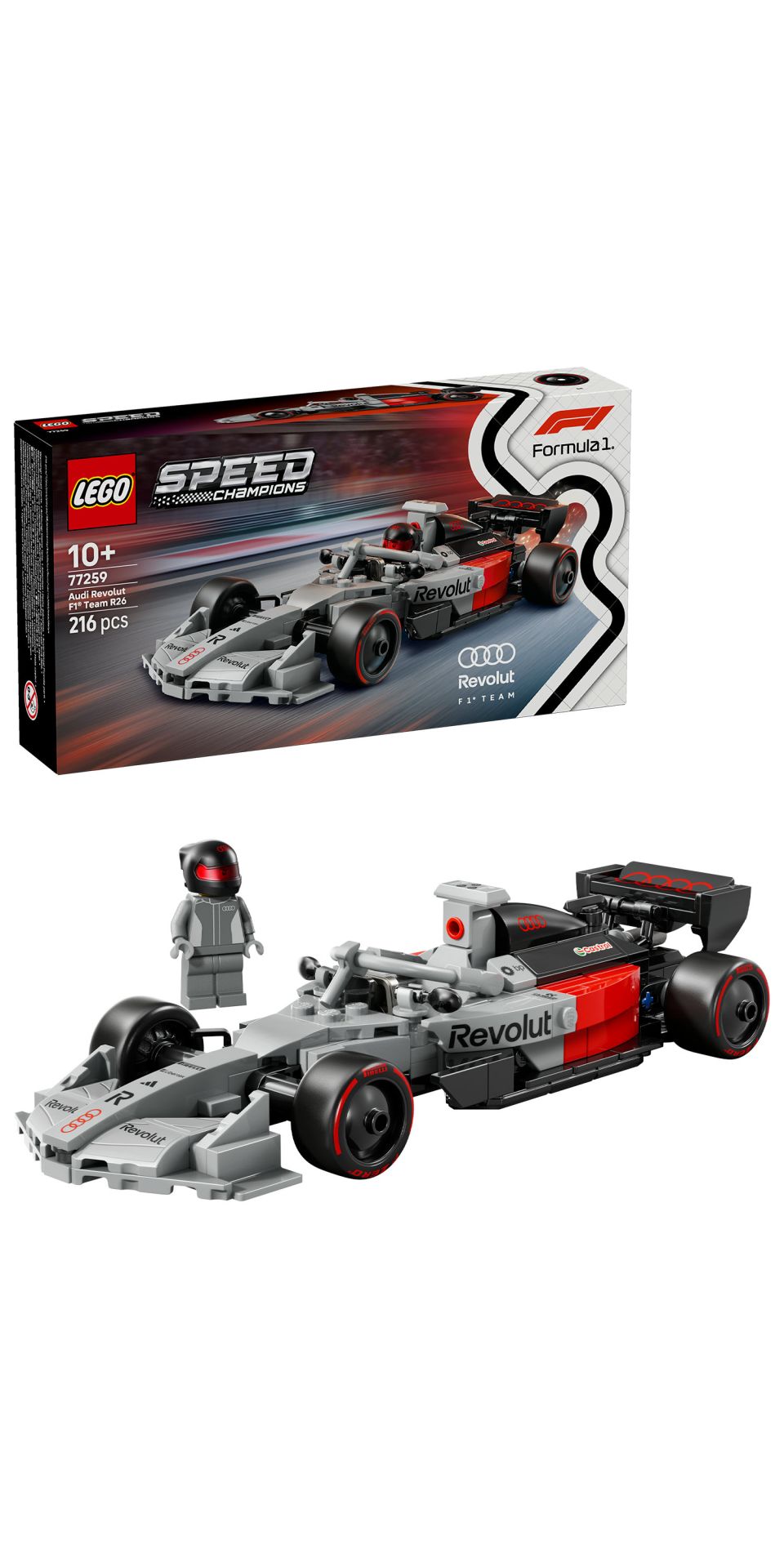 AUDI REVOLUT F1® TEAM RACEWAGEN SPEELGOED – LEGO® Speed Champions Audi Revolut F1® Team R26 racewagen speelgoed voor autoliefhebbers vanaf 10 jaar om te bouwen, neer te zetten en Formule 1® races vol actie mee na te spelen
