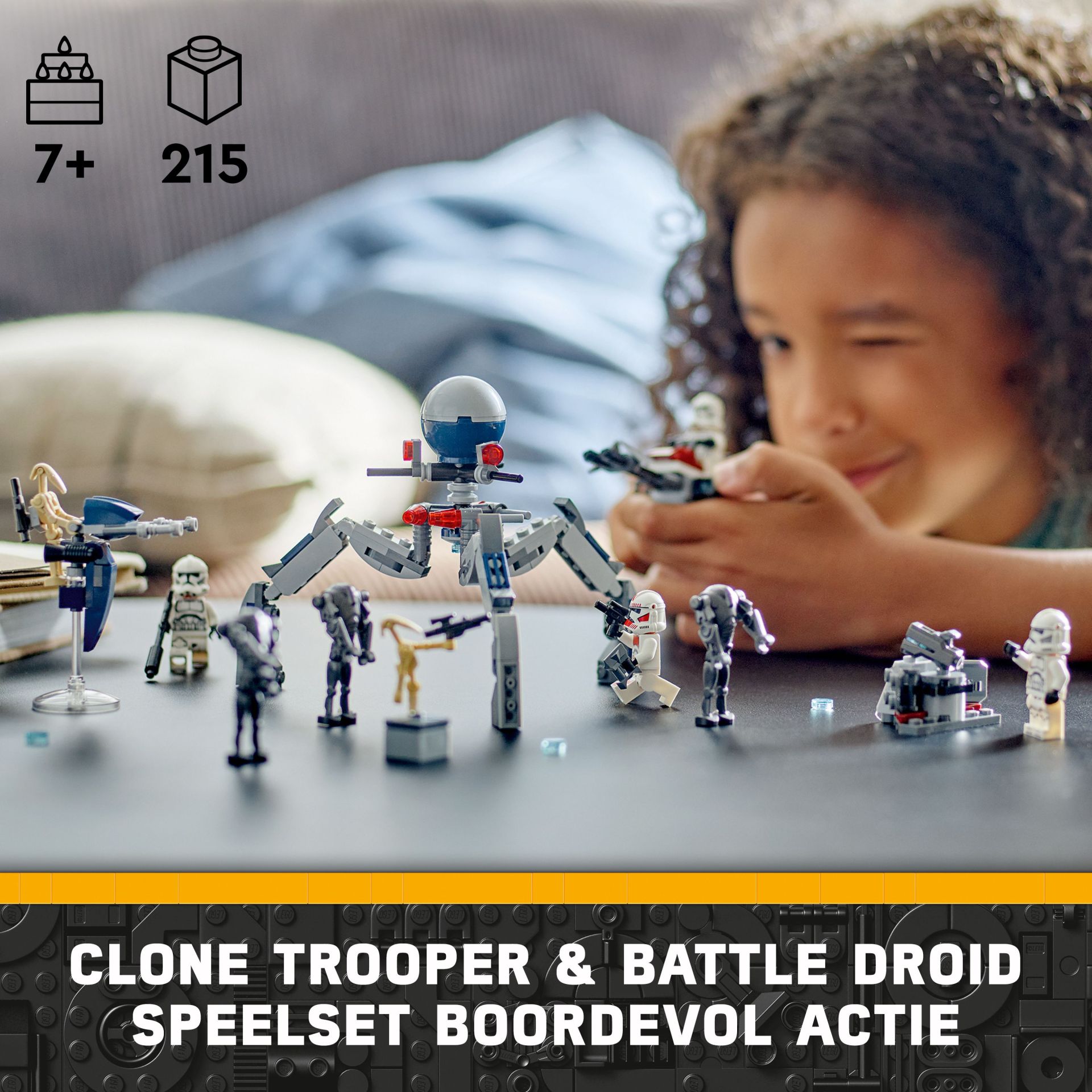 Deze LEGO bouwset bevat ook een noppenschietende Star Wars speeder bike voor 2 Clone Troopers en een bouwbare STAP speeder voor een Battle Droid. Een tri-droid met 3 schieters en een verdedigingspost met een noppenschieter zorgen voor nog meer creatieve speelmogelijkheden. Bekijk de LEGO Builder app voor digitale instructies en zoom- en draaifuncties om de bouwervaring nog leuker te maken.