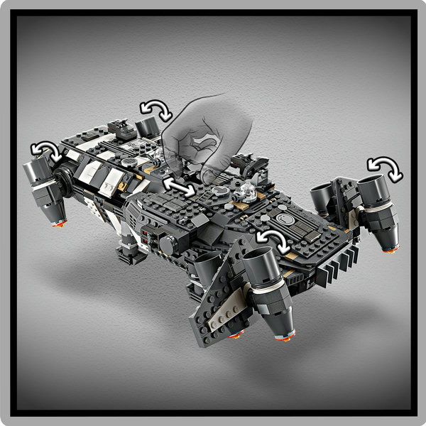 Kinderen worden de helden in hun eigen Star Wars: Skeleton Crew verhalen met deze gedetailleerde LEGO® versie van de Onyx Cinder (75374). Dit bouwbare LEGO Star Wars™ ruimteschip om te verzamelen heeft draaibare motoren voor landen/opstijgen of vliegen, 2 noppenschieters, 2 draaiende geschutskoepels, elk met 2 noppenschieters, en een grijpklauw. Er is zitruimte voor alle 5 de meegeleverde LEGO Star Wars personages (de Jod LEGO minifiguur in de cockpit en Wim, Fern, KB en Neel in de passagiersruimte), plus opbergruimte voor de 4 bouwbare zaklampen en andere vracht. Inclusief een keukentafel en een bed, plus accessoire-elementen zoals fruit en een walkietalkie om creatief spel te stimuleren.