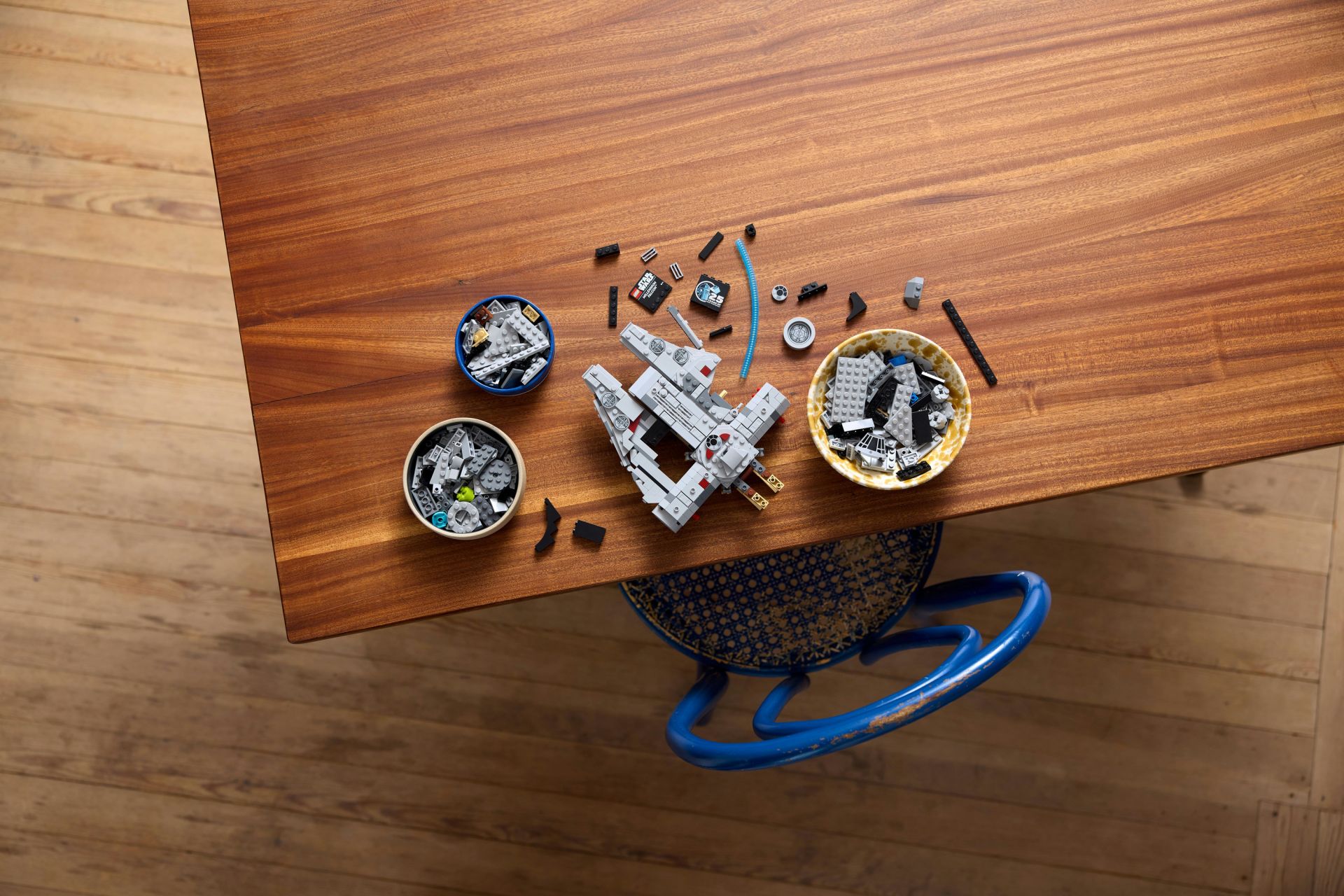 LEGO Millennium Falcon verzamelmodel om te bouwen en neer te zetten – denk terug aan klassieke scènes terwijl je een LEGO versie op middelgrote schaal bouwt van het meest bekende Star Wars ruimteschip