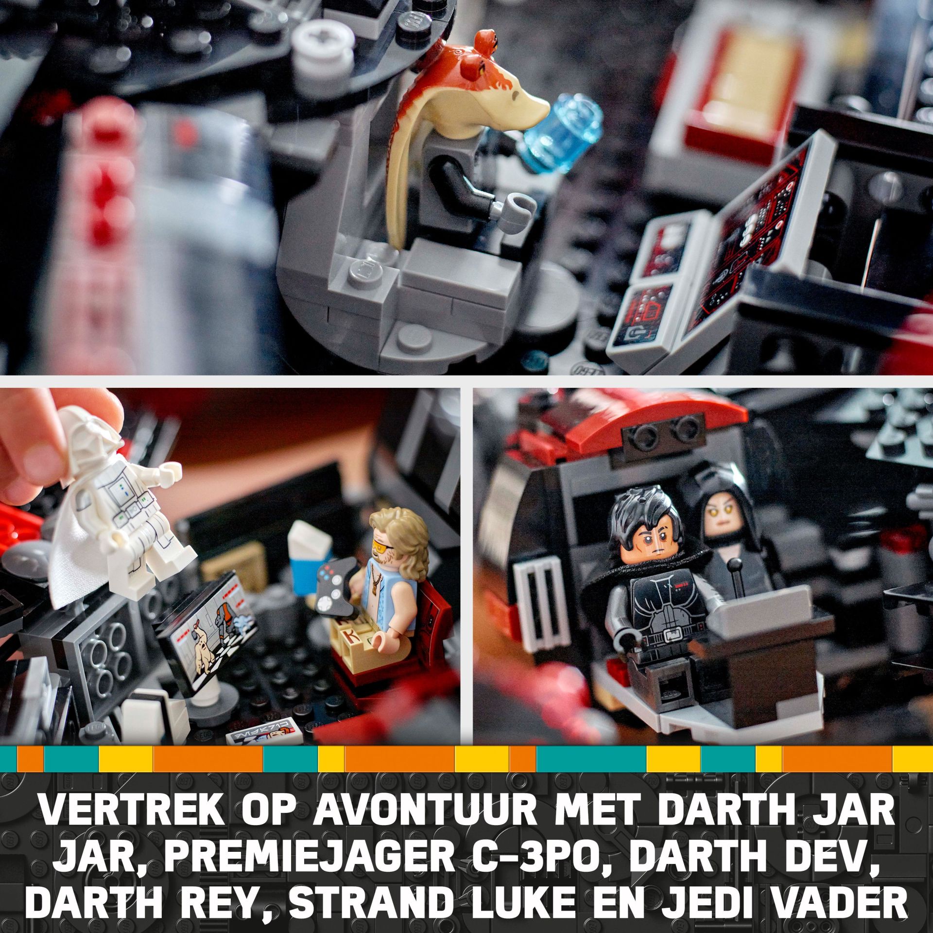 Deze bouwbare ruimteschipset is inclusief 6 LEGO Star Wars minifiguren zoals je ze nog nooit eerder hebt gezien, waaronder Darth Jar Jar, Strand Luke en Jedi Vader.