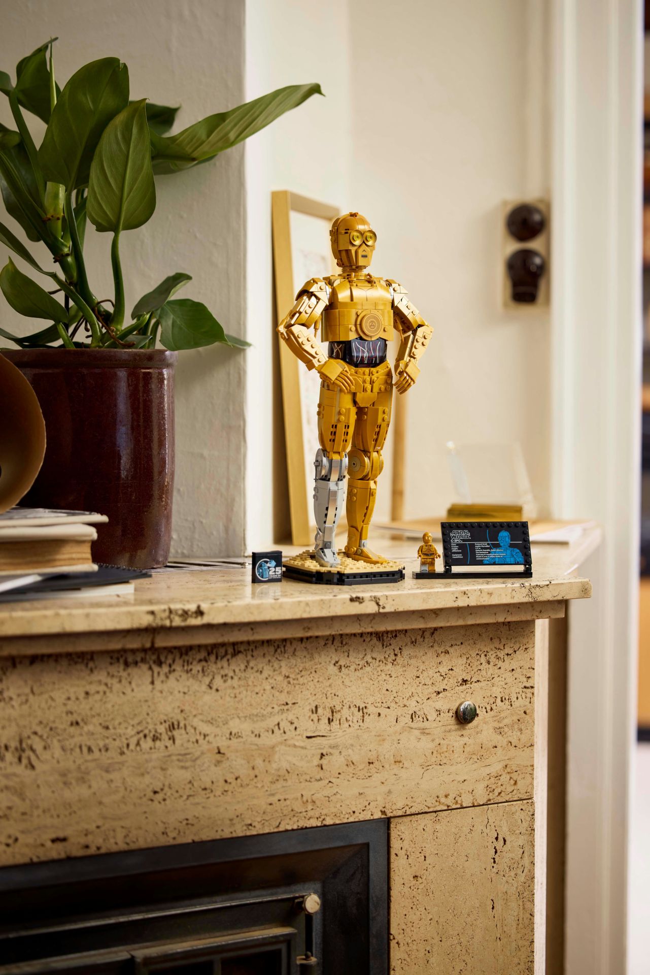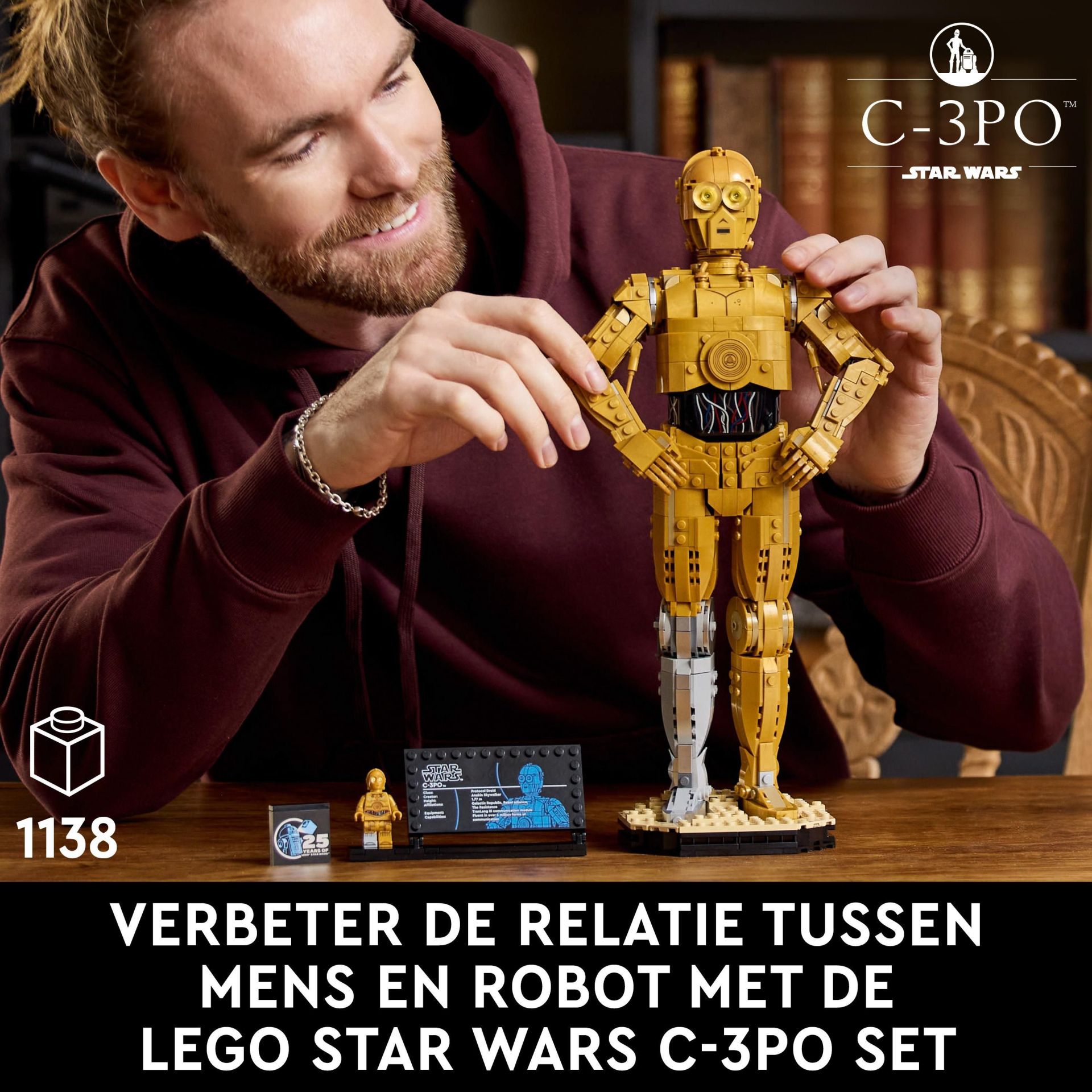 Deze LEGO Star Wars set voor volwassenen is ook inclusief een standaard met een C-3PO informatieplaatje en ruimte voor de C-3PO LEGO minifiguur, plus een jubileumsteen ter ere van 25 jaar LEGO Star Wars om de blikvanger helemaal af te maken.