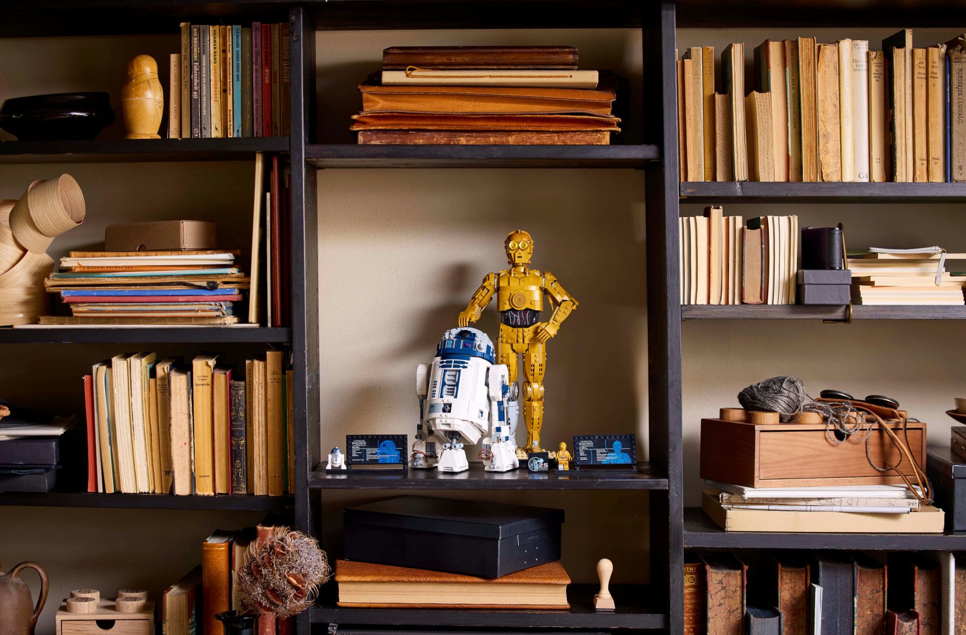 Je kunt een nog groter display maken door je creatie neer te zetten naast LEGO Star Wars R2-D2™ (set 75379, apart verkrijgbaar). Verstel een van de armen van C-3PO zodat het lijkt alsof hij zijn oude vriend over het hoofd aait.