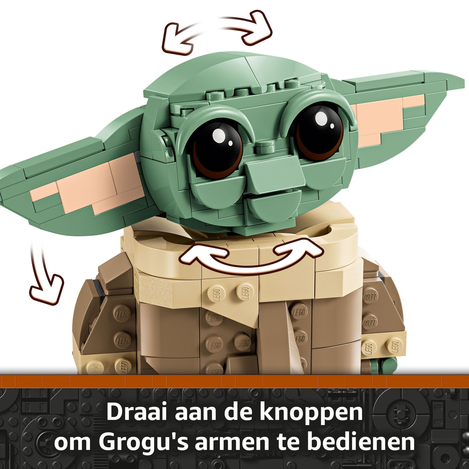 - Bouw- en displaymodel met speelse details – de bouwbare Grogu figuur heeft armen die met een draaiknop kunnen worden bediend en een verstelbaar hoofd en oren en kan zowel in als naast de zweefkinderwagen worden geplaatst