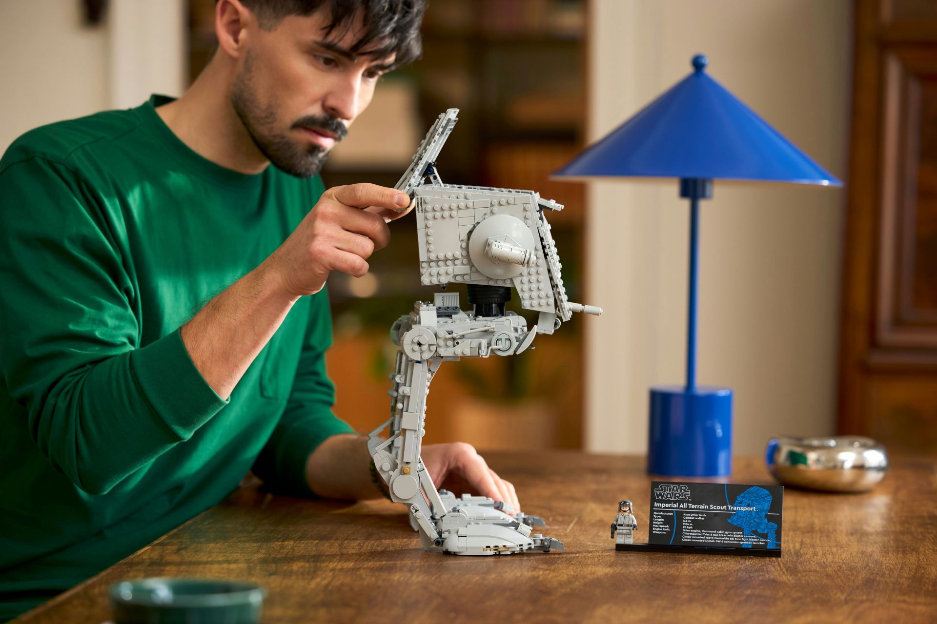 Dit bouwbare voertuig voor verzamelaars wordt geleverd met een informatieplaatje en een unieke LEGO Star Wars minifiguur van een AT-ST bestuurder (met het embleem van het Keizerrijk op zijn armen) om het opvallende display helemaal af te maken.