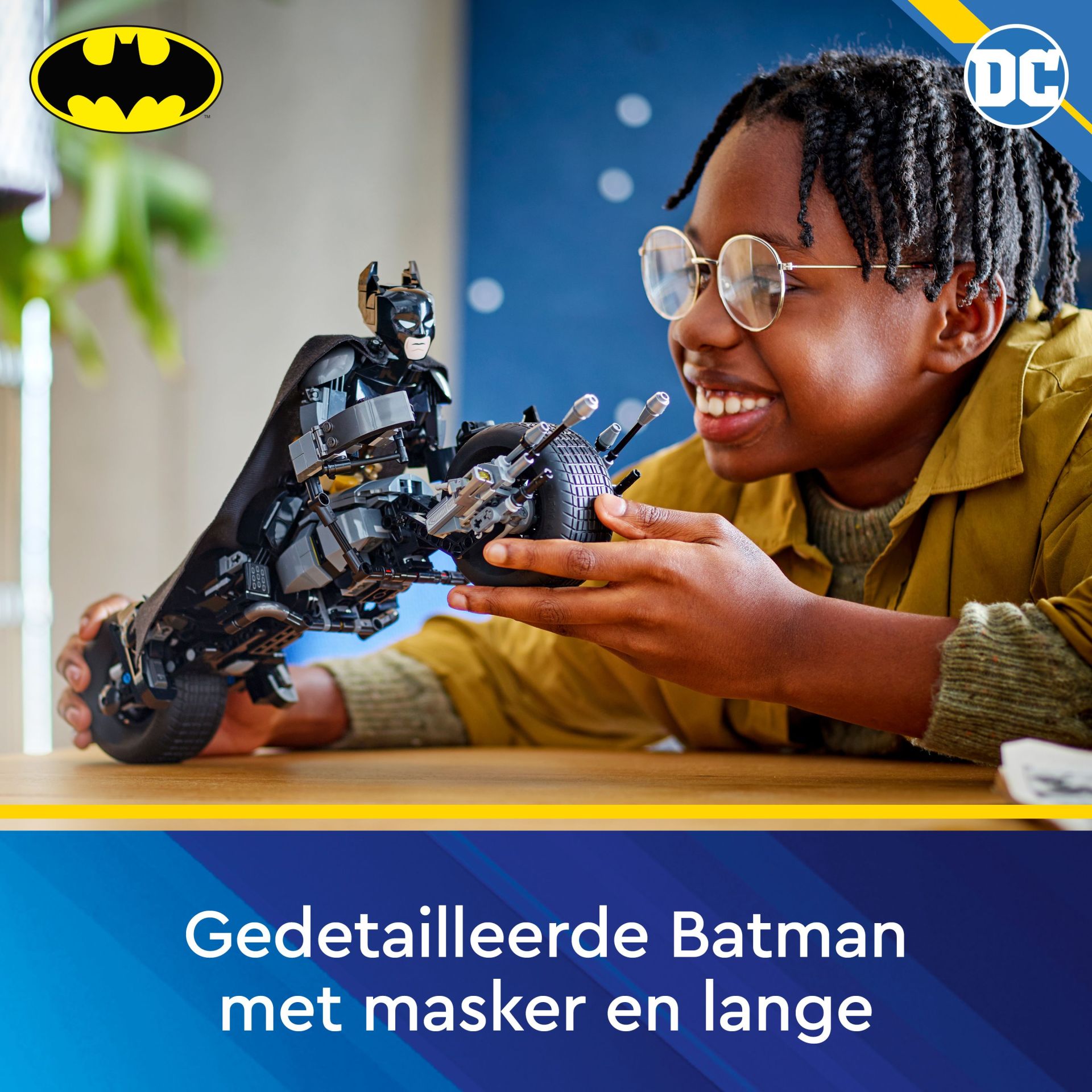De verstelbare LEGO® DC Batman™: Batman bouwfiguur en de Bat-Pod motor (76273) is de ultieme actiefiguur uit de film The Dark Knight voor fans van 12 jaar en ouder. Dit volledig beweegbare speelgoed met authentieke details is ca. 26 cm hoog en een cool verzamelobject.Dankzij de beweegbare schouder-, arm-, heup- en beengewrichten van het speelgoed kunnen kinderen allerlei houdingen en dynamische actiescènes creëren, wat deze superheldenfiguur geweldig maakt om te bouwen, mee te spelen en neer te zetten. De authentiek gedetailleerde Batman actiefiguur wordt geleverd met zijn stoere Bat-Pod motor, compleet met 2 noppenschieters. Voor nog meer digitaal plezier kunnen bouwers inzoomen, sets in 3D draaien en hun voortgang bijhouden met de leuke, intuïtieve LEGO Builder app.